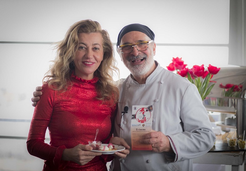 Il Comitato Calabria Cinetourism non avrebbe potuto trovare chef migliore per interpretare la sua cucina “cinematografica” nella figura dello chef/attore italo Americano Andy Luotto, personaggio poliedrico che ha avuto il piacere di avere ospiti negli anni ’60, nella casa dei genitori a New York Fellini, Loren, Mastroianni. L’idea della sua arte è “Cucina povera in bella vista”; ed è la stessa l’idea che il Comitato ha in animo per la valorizzazione e promozione degli eccellenti prodotti enogastronomici calabresi che sono al top come qualità ma che spesso sono carenti di valorizzazione e commercializzazione. Lo chef internazionale ha presentato il suo menù alla carta nella terrazza dell’ Hotel La Griffe di via Nazionale a Roma ed alcuni piatti sono stati scelti dal presidente del Comitato Calabria Cinetourism la prof. Mantovani in quanto identificavano il Comitato sia per i sapori che per il colore rosso degli ingredienti utilizzati per le portate. La terrazza è stata addobbata con infiniti tulipani rossi e come antipasto è stato servito un Manteccato di baccalà con cipolla rossa in agrodolce i cui colore rosso identifica il comitato ed il baccalà manteccato il Veneto in onore del suo presidente. Il baccalà era stato lavorato con 2/3 di olio siciliano, ed 1/3 di olio biologico al girasole, cipolla rossa marinata, aceto, zucchero acqua e alloro. Il sapore del pesce era morbido ed avvolgente che contrastava in un modo non aggressivo con la cipolla rossa. Il secondo piatto sempre rosso era una tagliata di manzo con rapanelli, finocchi ed agrumi. Mentre il dolce era un fantastico ed unico tiramiCuscus ossia la versione speciale del dolce più venduto nel mondo il tiramisù. Lo chef ha sostituto il savoiardo o il biscotto con il CUS CUS, per cui il dessert risultava meno dolce ed i grani di cus cus davano una consistenza ed una piacevolezza nuova ed esaltante.