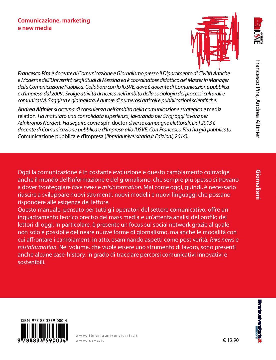 “l’opera di Francesco Pira ed Andrea Altinier vuole fornire strumenti efficaci per disinnescare le fake news e la misinformation attraverso teorie riportate in modo chiaro e con l’utilizzo di numerose case history che rappresentano un benchmark efficace. Il linguaggio del volume è preciso, grazie anche all’impiego di un apparato terminologico scientifico, e fornisce a chi si avvicina a questo mondo, neofita, studente o professionista, un background solido ed approfondito sulle tematiche affrontate”.