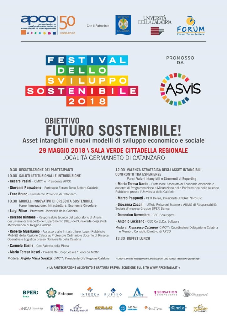 In programma il 29 maggio a Catanzaro il convegno per celebrare il Festival Nazionale dello Sviluppo Sostenibile 2018, tema dell'incontro: "Asset intangibili e nuovi modelli di sviluppo economico e sociale"