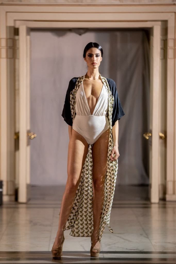 Anche ieri sera è tornato il beachwear: la collezione Blonde Cintre SS18 di Viviana Vlachopulos è elegante e ricercata, sui toni raffinati dell’oro, del blu, e degli immancabili bianco e nero.