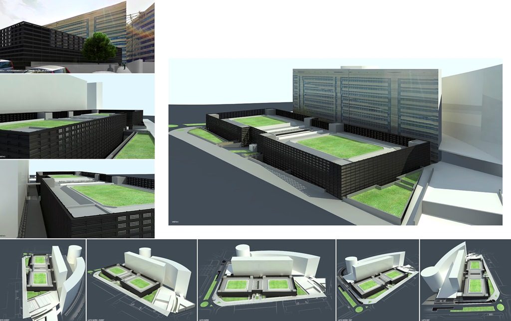 L’intervento comprende la realizzazione di un parcheggio a due piani interrato, con la creazione di una piazza sovrastante, adibita a verde pubblico, nell’area adiacente il nuovo Palazzo di Giustizia, lungo la via del Gelsomino, per un totale complessivo di quasi mille posti auto. Il progetto prevede inoltre la creazione di una serie di varchi di accesso e la sistemazione della viabilità circostante.