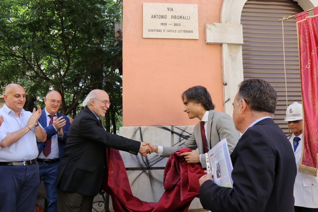 Questo pomeriggio si è svolta la cerimonia di inaugurazione di una via della città di Reggio e la messa in sito di una targa toponomastica in onore di Antonio Piromalli. L’intitolazione di una strada, posta di fronte alla Biblioteca comunale “P. De Nava” di Reggio Calabria, alla presenza del Sindaco avv. Giuseppe Falcomatà, del delegato dott. Franco Arcidiaco e del presidente della Commissione Toponomastica dott. Giuseppe Cantarella, rappresenta il giusto tributo a un grande intellettuale, docente di Letteratura Italiana nelle Università di Urbino, Bologna, Salerno, Cassino. Famosi i suoi libri: La letteratura Calabrese in due volumi; Letteratura e Cultura popolare; Saggi critici di Storia Letteraria; monografie su Fogazzaro, Corazzini, Gozzano, Seminara, Deledda, Padula, Ariosto, Michelstaedter, Pierro, Calogero, Gioacchino Da Fiore e Dante; “Società, cultura e letteratura in Emilia Romagna”; “La Storia della cultura a Rimini nell’Ottocento”; le raccolte poetiche: “Sei tu il bolero” e “Ti estraggo dai tifoni”, “La ragazza di Ferrara”, “Da un’altra stanza” e numerose altre pubblicazioni. Alla fine della cerimonia, nei locali della Biblioteca comunale “P. De Nava”, si sta svolgendo il convegno “Antonio Piromalli a quindici anni dalla morte“.