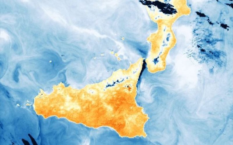 Pubblicate sul sito dell'Esa, le immagini della Sicilia e dell'Etna sono nell'infrarosso e sono state catturate dall'altimetro e dal radiometro Slstr (Sea and Land Surface Radiometer), progettato in Italia da Leonardo