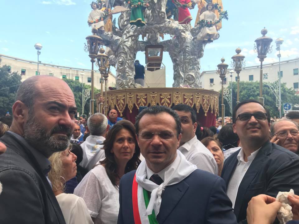 Tanta emozione e partecipazione a Messina per la processione della Vara. Il carro votivo, partito da Piazza Castronovo, come da tradizione sta percorrendo la città in attesa di essere accolto da Monsignor Accolla a Piazza Duomo. Il momento più atteso, e sicuramente quello più rischioso, è quello della “girata”: per immettere il carro votivo in via Primo Settembre, tiratori e timonieri dovranno far ruotare il carro manovrando le corde con una precisione certosina. L’edizione 2018 della Vara è la prima a cui partecipa il neo sindaco Cateno De Luca e il Prefetto Maria Carmela Librizzi. Il sindaco di Messina, la cui devozione è nota, è presente alla processione insieme alla sua squadra di assessori. La richiesta che il primo cittadino rivolge alla Madonna è quella di avere grande forza e perseveranza nell’amministrare al città, cioè “capacità di discernimento tra ciò che è giusto e possibile fare per la città di Messina”. Tanta emozione anche nelle parole del Prefetto, che quest’anno segue dal vivo la processione insieme all’Arcivescovo di Messina: “La Vara è una grande festa di popolo, quest’anno ho deciso di vederla insieme alla gente. Invito tutti a farlo”.