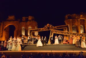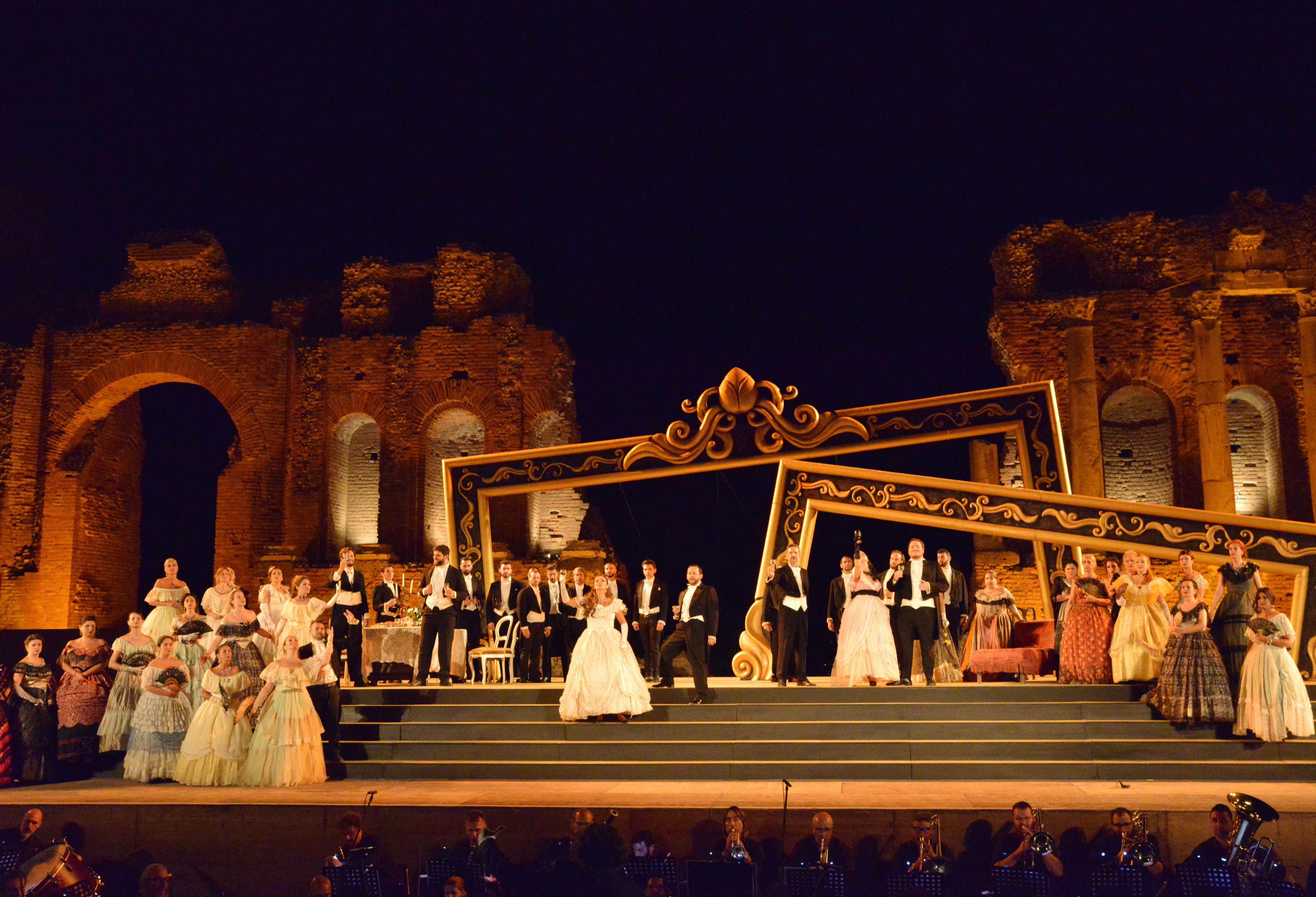 Sold out e pubblico in estasi per La Traviata di Giuseppe Verdi, in scena martedì scorso al Teatro Antico di Taormina nell’ambito della seconda edizione della rassegna operistica Mythos Opera Festival. Ad aprire la serata l’emozionante esibizione alle tastiere di Federico Santangelo, giovane disabile pescarese riuscito, grazie alla passione per la musica, a raggiungere importanti traguardi. Seguito dal Maestro Alessandro Di Millo, il 23enne ha eseguito alcuni brani sul palco del Teatro Greco, raccogliendo scroscianti applausi. Inclusione e disabilità sono stati i temi portanti di questa seconda edizione del Mythos Opera Festival, che come ogni anno si propone di accendere i riflettori su importanti temi sociali. Subito dopo spazio alla grande opera con La Traviata.