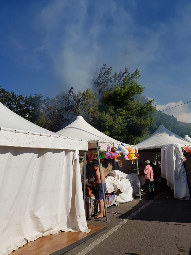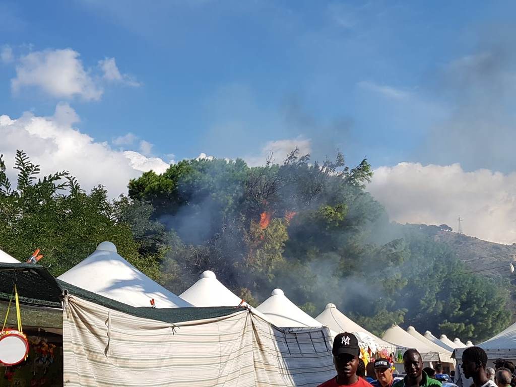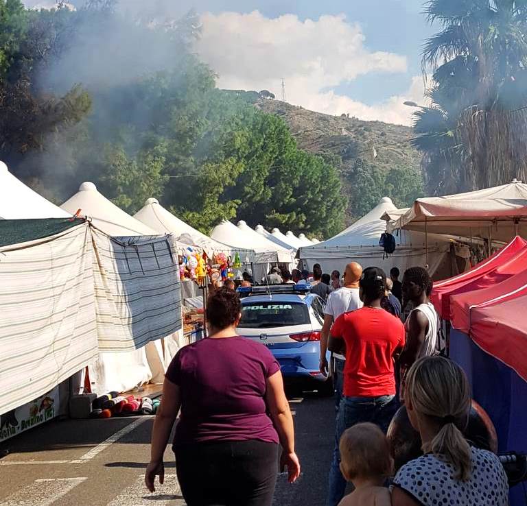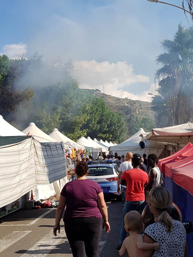 Attimi di grande paura alle Bancarelle di “Festa di Madonna” installate a Pentimele, nella zona nord di Reggio Calabria: pochi minuti fa è scoppiato un incendio tra gli stand. Le fiamme hanno raggiunto un albero diventando incontrollabili, e si è scatenato il panico prima dell’arrivo della Polizia e dei Vigili del Fuoco. Nel corri-corri generale, in tanti si sono dati alla fuga mentre altri hanno tentato di salvare le bancarelle coinvolte spostando gli stand e i loro prodotti, provando a domare le fiamme con bidoni dell’acqua. Ancora non è nota la causa dell’incendio, ma la strada strettissima che separa le due file di gazebo rende tutto più difficile compromettendo la sicurezza. La scelta di raccogliere tutte le bancarelle su via Vecchia Pentimele lasciando uno spazio strettissimo per i pedoni s’è rivelata, com’era facile immaginare, estremamente pericolosa. Le bancarelle, secondo il programma, dovrebbero rimanere aperte fino a Domenica.