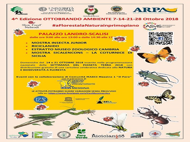 StrettoWeb » MESSINA » Floresta, la Natura in primo piano: torna “Ottobrando Ambiente”Floresta, la Natura in primo piano: torna “Ottobrando Ambiente”Al via a Floresta la 4^ Edizione di Ottobrando Ambiente 2018 di Serena Guzzone 1 Ott 2018 | 20:53 / A Palazzo Landro Scalisi di Floresta nelle giornate del 7-14-21 e 28 Ottobre si svolgerà la 4^ Edizione di Ottobrando Ambiente 2018, #aFlorestalaNaturainPrimoPiano. Di seguito la locandina con tutti gli eventi in programma: Leggi altri articoli di News