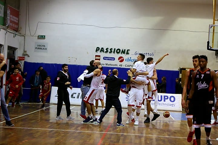 L’Irritec Costa d’Orlando batte la Viola Reggio Calabria dopo un tempo supplementare 85 a 81. Partenza super della Costa d’Orlando che difendendo a zona mette in difficoltà gli ospiti nei primi cinque minuti di gara. L’ingresso in campo di Tommaso Cornovali cambia però l’inerzia e con 9 punti in meno di cinque minuti la Viola ritorna in partita e chiude il primo parziale avanti di 5 (18-23). Dopo la prima pausa la squadra di coach Condello sembra intenzionata a dare filo da torcere alla corazzata calabrese regalando grandi sprazzi di ottima pallacanestro con una difesa intensa e veloci transizioni. Balic e compagni recuperano lo svantaggio e con un buon parziale di 14 a 3 tornano avanti nel punteggio. Si va all’intervallo lungo con la Costa avanti 41 a 34. Dopo un inizio positivo della Viola Reggio Calabria al rientro dagli spogliatoi la squadra di Condello riesce a mantenersi in scia nonostante i canestri di Mastroianni e Carnovali. A pochi secondi dalla sirena i paladini si riportano sul meno quattro ma è una tripla pazzesca di Nobile a chiudere il parziale sul 54 a 61. Nell’ultimo quarto la Costa parte bene e la schiacciata di Bartolozzi che riceve da Gambarota significa 58 a 63. La partita vive di strappi ma Peppe Condello, con coraggio, decide di buttare nella mischia il giovane Ferrarotto che, di fatto, cambia la gara per i paladini. Recupera palloni in difesa e si presenta più volte in lunetta il giovane del vivaio della Costa che esce sul meno uno accompagnato dagli applausi del Pala Valenti. E’ Amar Balic a segnare il canestro del 74 pari che porta le due squadre all’over time. La Viola sembra averne di più e dopo due minuti è già avanti di sei punti. La Costa però non si arrende e piazza un parziale di 8 a 0 che piega la resistenza avversaria. I due liberi del capitano fissano il punteggio sul 85 a 81 per una festa che esplode nel “fortino” del Pala Valenti.