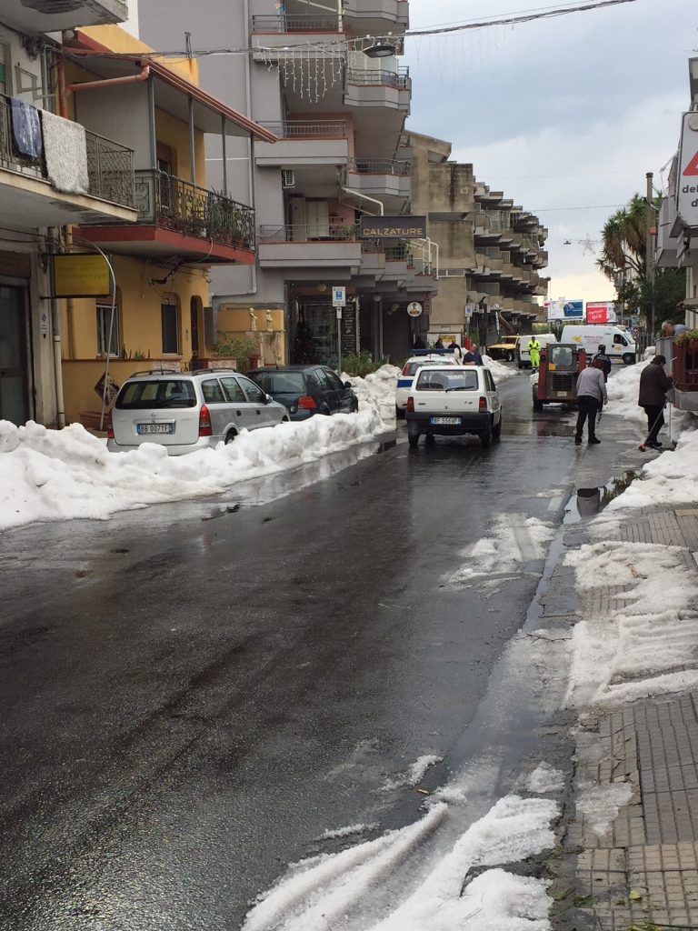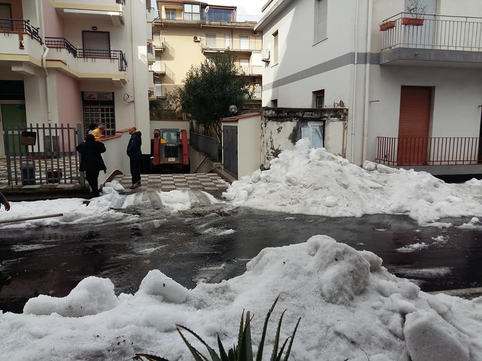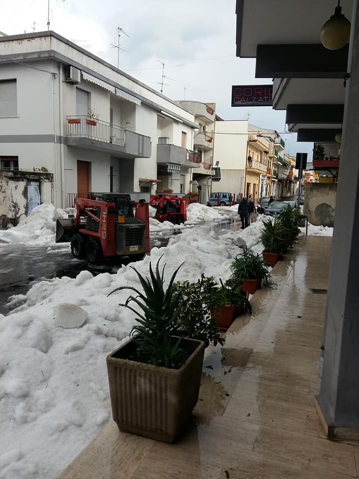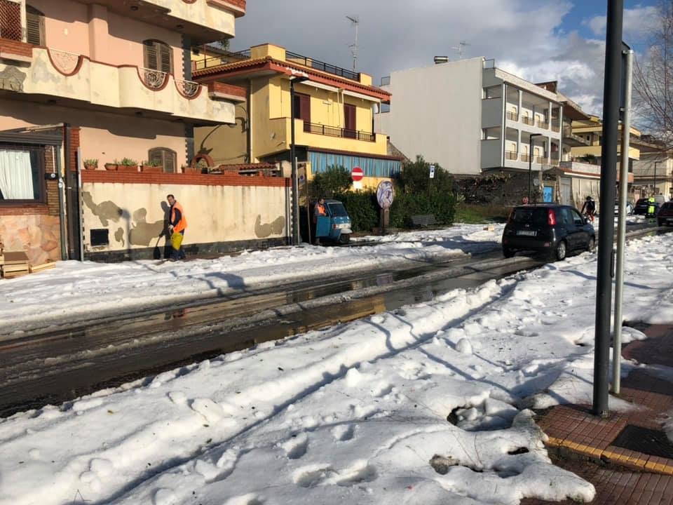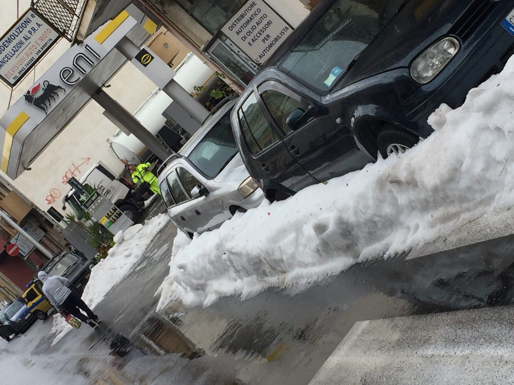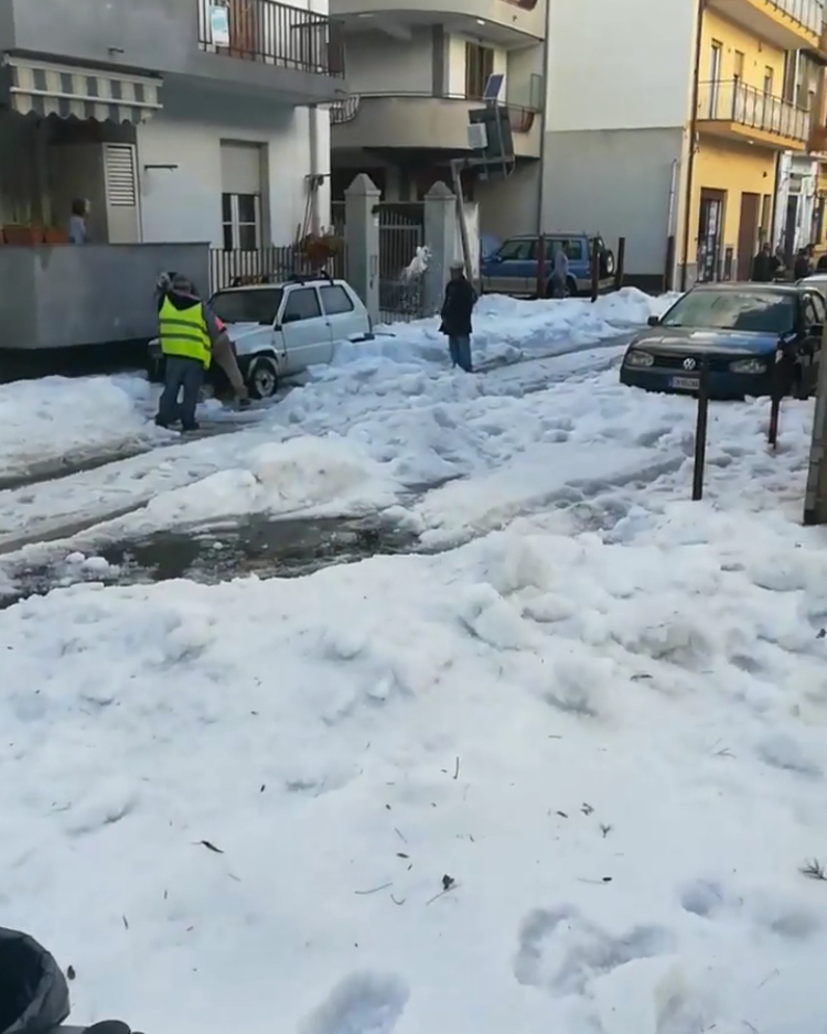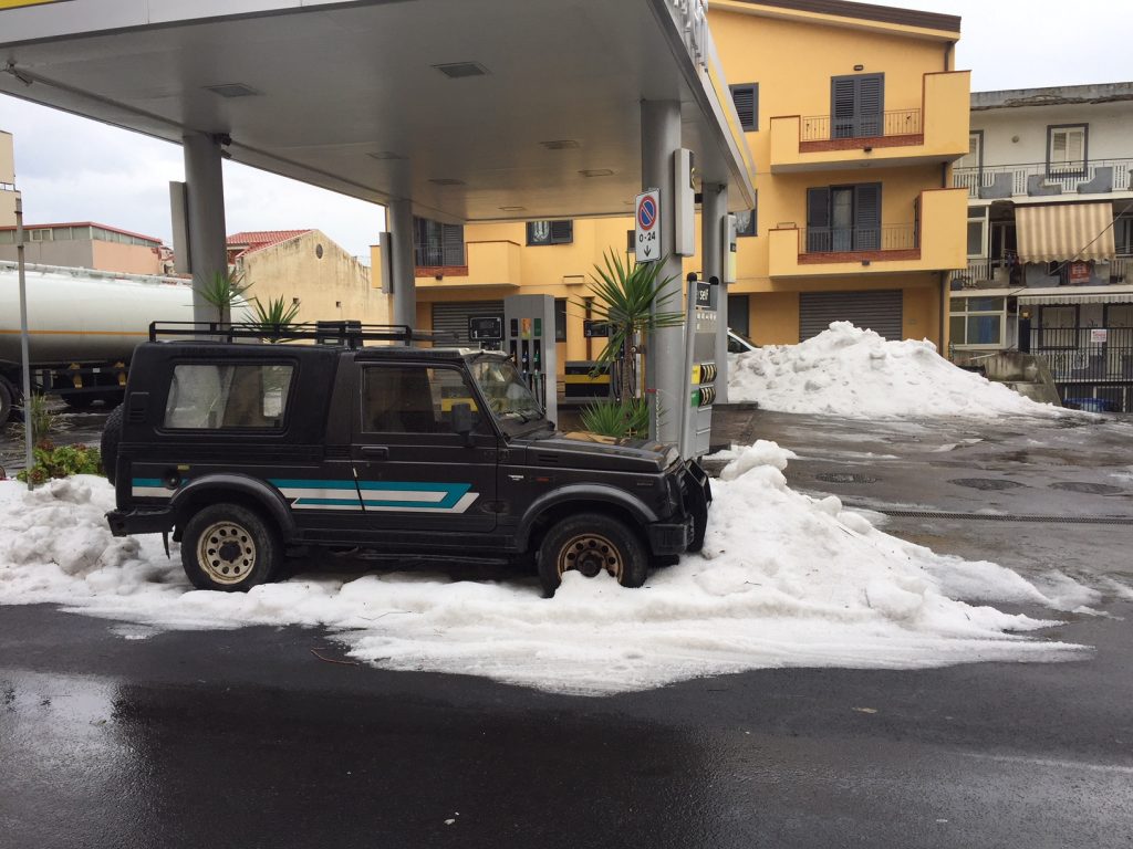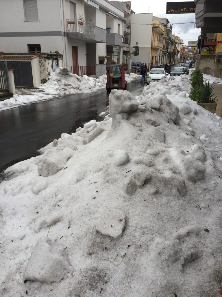 Roccalumera.Questa notte intorno alle 00.45 si è abbattuto sulla riviera jonica una violenta grandinata, che ha causato notevoli disagi al risveglio alle popolazioni locali.Al momento nei vari comuni sono all’opera gli operai che cercano di spalare la grandine che ancora non si è sciolta in alcune zone dei paesi . Notevoli i disagi dalle prime luci dell’alba per gli spostamenti, sospesi per qualche ora i treni, possibile muoversi solo con gli autobus. Chiusa ancora la nazionale di Roccalumera nel tratto di piazza Mazzullo fino alla rotatoria che si trova all’entrata del paese. Un bob cat sta spalando le montagne di grandine per rendere agibile l’ingresso alle abitazioni, il transito sulla strada ancora è chiuso.Numerosi i danni ad alcuni garage che si trovano sotto il livello della strada dove non si riesce ad entrare in quanto a causa del peso della grandine si sono spostate le saracinesche dalle guide. Il cancello del B &b La Casa del vento divelto a causa di una tenda che non ha retto il peso della grandine. Nel giro di poche ore si auspica un ritorno alla normalità!
