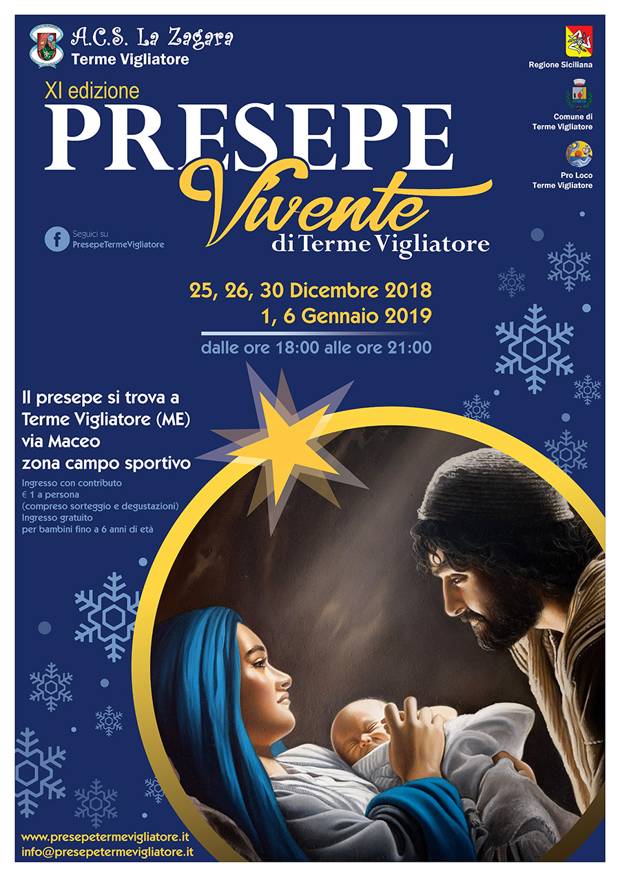 Anche quest’anno a Messina, in Via Maceo zona campo sportivo di Terme Vigliatore, si rappresenterà il famoso presepe vivente. Si potranno osservare nuovi scenari e percorsi. I giorni di apertura previsti sono il 25,26,30 dicembre 2018 e 1 e 6 gennaio 2019 dalle 18 alle 21.