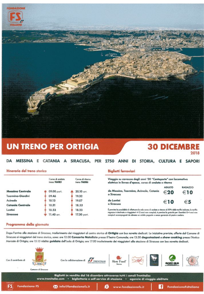 ll programma prevede partenza dalla stazione di Messina alle ore 9.00 con fermate intermedie per servizio viaggiatori a Taormina (9.46), Acireale (10.13), Catania (10.31), Lentini (10.53) e arrivo programmato a Siracusa alle 11.40.