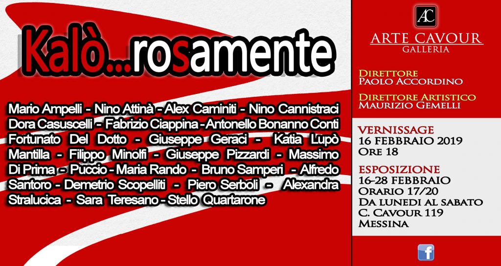 “Kalò..rosamente” è il titolo della mostra d’arte che si aprirà sabato 16 febbraio 2019, ore 18, presso la Galleria Arte Cavour di Corso Cavour 119, Messina.