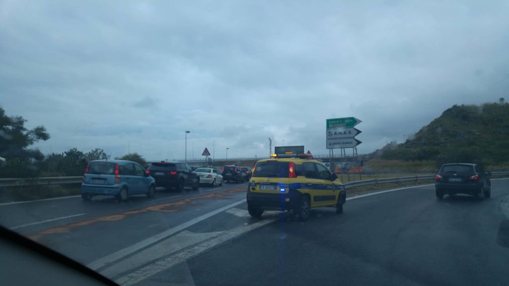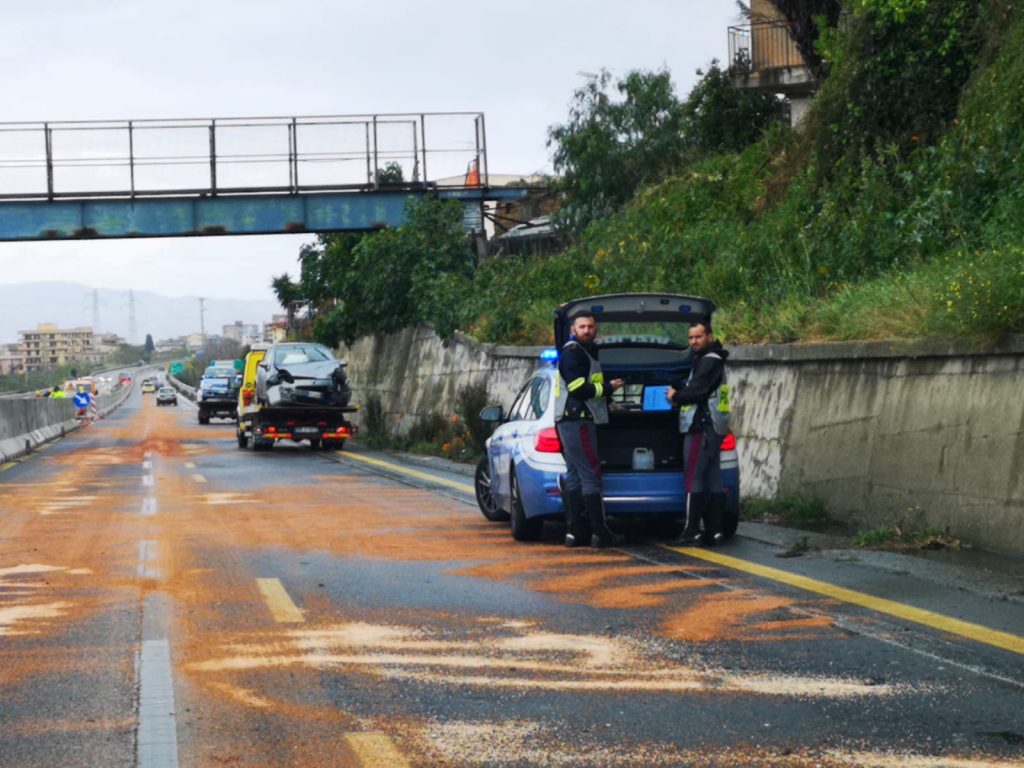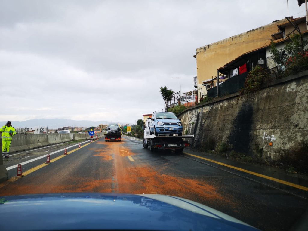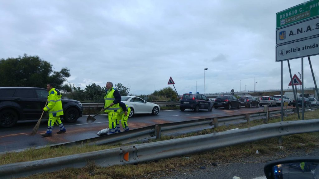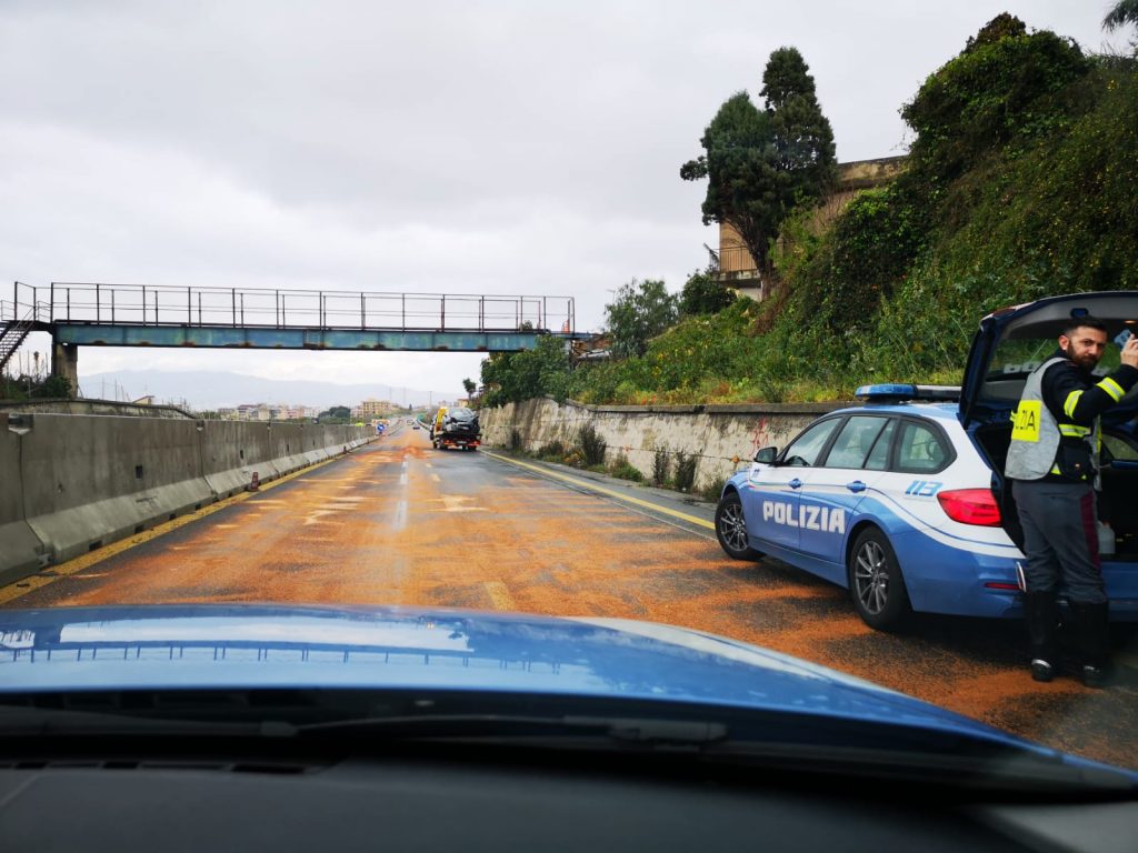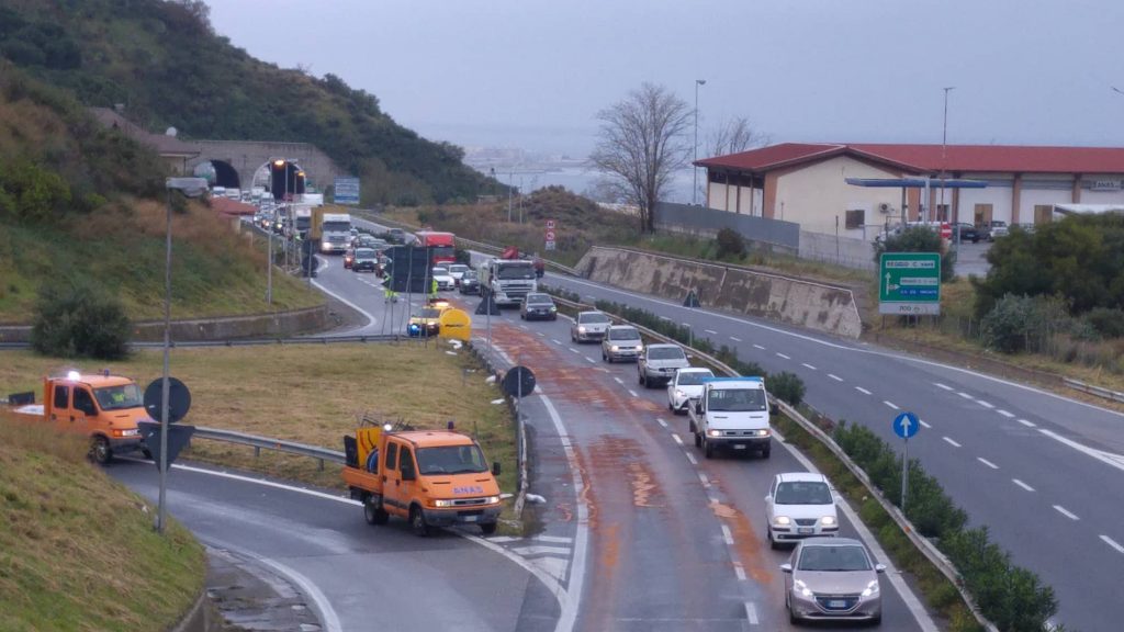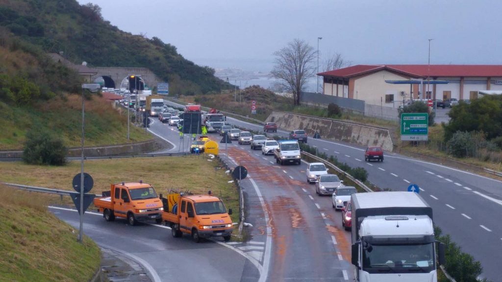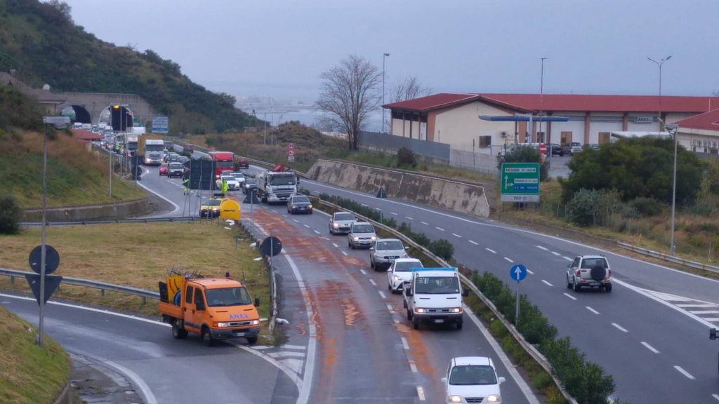Reggio Calabria, pauroso incidente in autostrada tra il Porto e lo svincolo di Gallico: autocarro rompe serbatoio e perde benzina innescando maxi tamponamento a catena [LIVE]