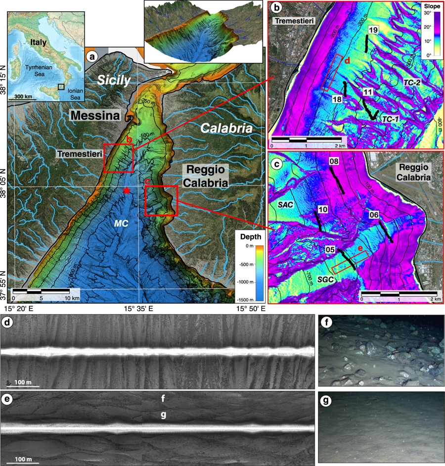 I ricercatori Martina Pierdomenico e Daniele Casalbore (entrambi del CNR-IGAG,Consiglio Nazionale delle Ricerche, Istituto di Geologia Ambientale e Geoingegneria) e Francesco Latino Chiocci (dell’Università La Sapienza di Roma), che avevano iniziato un progetto per realizzare la carta geologica del fondale a mille metri di profondità nello Stretto di Messina, una delle aree più geologicamente attive del Mediterraneo centrale, si sono imbattuti in qualcosa di incredibile: rifiuti urbani in enormi quantità a diverse centinaia di metri di profondità. La particolare impostazione geomorfologica dello Stretto di Messina è caratterizzata da una ripida catena montuosa molto vicina alla costa, drenata da fiumare in grado di trasportare detriti e spazzatura durante gli eventi di piogge torrenziali ma anche da canyon sul ripido fondale. L’ambiente appena descritto, abbinato alle aree costiere densamente popolate e alle scarse pratiche per lo smaltimento dei rifiuti, particolarmente evidenti nella città di Reggio Calabria, sempre più abbandonata al degrado ambientale, rappresentano un laboratorio naturale per lo studio del trasferimento dei rifiuti urbani solidi marini alle acque profonde.