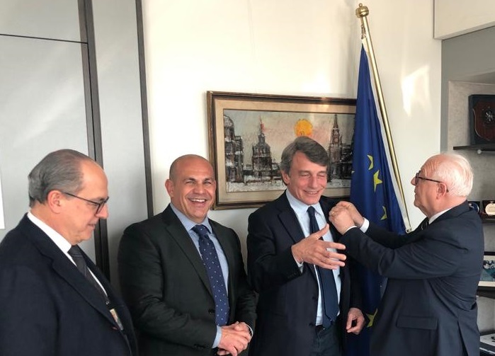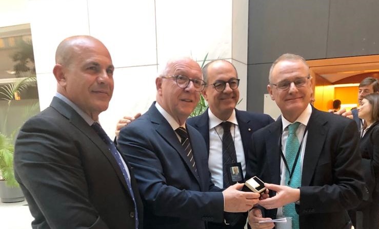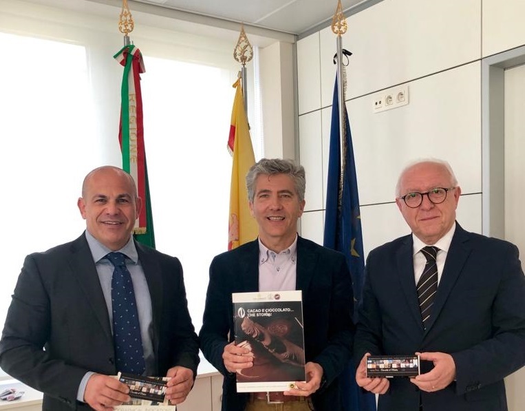 A margine della iniziativa Scivoletto e Peluso hanno incontrato il Vicepresidente del Parlamento Europeo Davide Sassoli e il Dottor Diego Canga Fano, Capo di Gabinetto del Presidente del Parlamento Europeo Antonio Tajani. Agli illustri personaggi hanno consegnato lo spillino d’argento riproducente la barretta del cioccolato di Modica IGP, per il loro sostegno al Consorzio, il primo Sassoli nella delicata fase di modifica del Regolamento comunitario, il secondo Canga Fano per il suo incarico precedente di Direttore Generale della Commissione AGRI, che ha trattato il Dossier Cioccolato di Modica IGP.