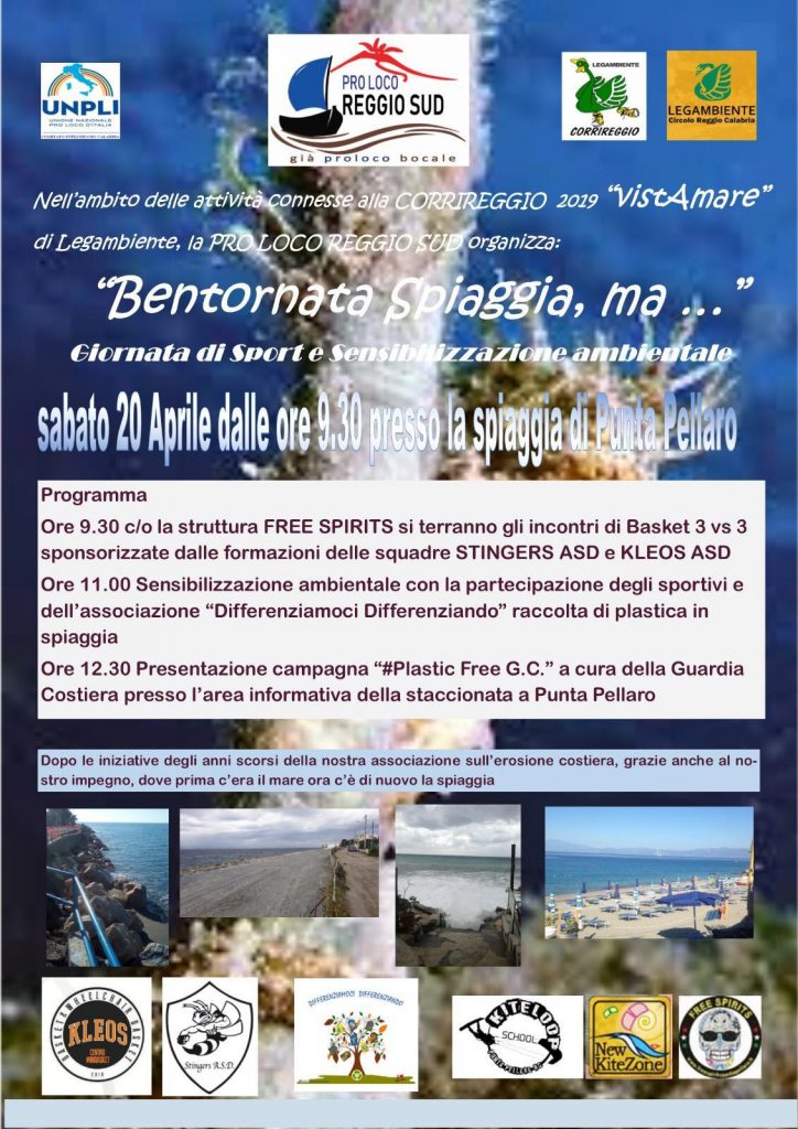 Vorrei ringraziare per averci ospitato la struttura sportiva del Free Spirits nella quale si sono cimentati in partite di Basket 3 vs 3 i ragazzi, sponsorizzati dalle formazioni delle squadre Stingers Asd nella persona della presidente Maria Teresa Bozzaotra e Pasquale Calabro’ e dell Asd Kleos nella persona del presidente Paolo Polimeni., che ringrazio ulteriormente per la collaborazione. Ringrazio inoltre i cittadini, gli sportivi, l’associazione “Differenziamoci Differenziando” per aver partecipato alla raccolta di plastica in spiaggia e gli operatori dell’AVR che ci hanno supportato con mezzi ed attrezzature idonee alla raccolta. Durante la mattinata si è svolto un momento di sensibilizzazione ambientale, grazie alla presenza del sottotenente Roberto Pellegrino della Guardia Costiera di Reggio Calabria che ci ha illustrato la loro campagna “#Plastic Free GC” Si ringraziano ulteriormente le istituzioni presenti quali: la Città Metropolitana nella persona dell’Ass. Demetrio Marino, il comune di Reggio Calabria nelle persone dell’Ass. Giuseppe Sera, del Cons. Nancy Iachino, del Cons. Pasquale Imbalzano. Al termine dei saluti abbiamo rammentato a tutti gli intervenuti le prossime attività che la nostra Pro Loco effettuerà entro il 21 giugno, data di ultimazione dei lavori dell’istallazione della staccionata che limiterà l’accesso delle auto nell’arenile, riportando anche decoro e riqualificazione a quest’area tutt’oggi degradata e divenuta ormai discarica a cielo aperto, salvaguardando così anche le specie protette di fauna quale il fratino e la tartaruga caretta caretta e di flora quale il giglio di mare che insistono nell’area circostante”.