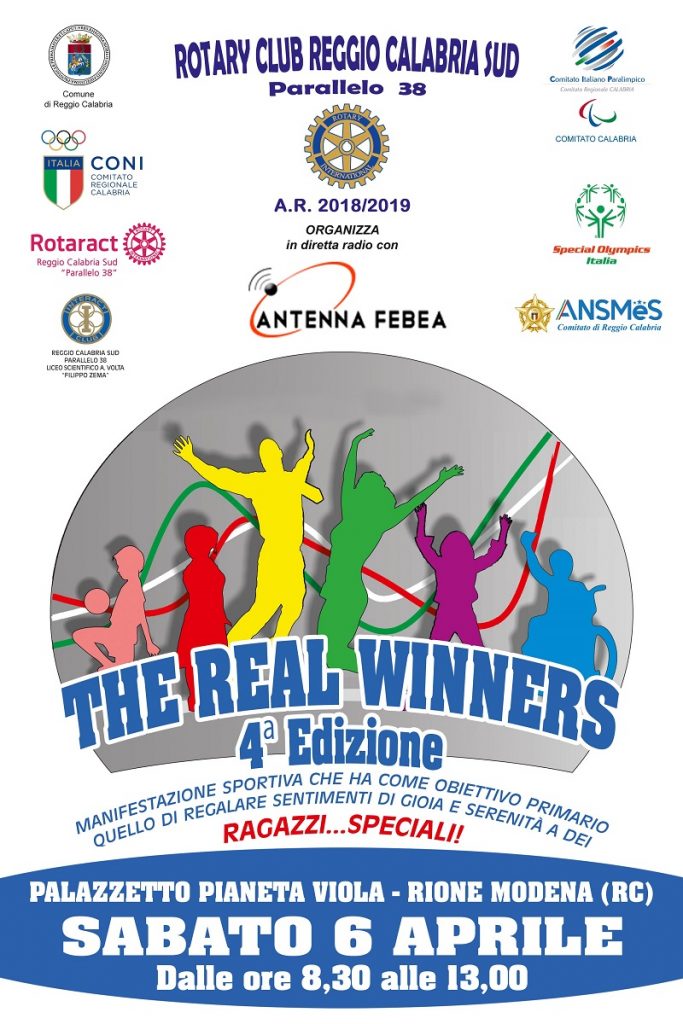 Sabato 6 aprile alle ore 9.00 presso il Palazzetto dello Sport “Pianeta Viola” di Reggio Calabria, il Rotary Club Reggio Calabria Sud Parallelo 38, da sempre vicino allo sport ed alle persone con disabilità, propone una manifestazione sportiva dal nome “The REAL Winners”, giunta alla quarta edizione, che ha come obiettivo primario quello di regalare sentimenti di gioia e serenità a dei “ragazzi speciali”! La manifestazione, studiata e progettata dal prof. Paolo Albino, socio dello stesso Club, intende portare a conoscenza della cittadinanza le attività sportive dei ragazzi con disabilità per coinvolgerli e dare una mano alle loro famiglie. Quest’anno il programma ha assunto una importanza nazionale, supportato dal governatore del Rotary Distretto 2100 , Salvatore Iovieno e da Antonio SQUILLACE, Presidente Commissione Progetti Distrettuali Rotary Distretto 2100 diventando progetto distrettuale. La manifestazione vuole far conoscere e diffondere lo sviluppo della pratica sportiva delle persone con disabilità, unitamente al recupero della dimensione relazionale dello sport. Il ruolo dello sport nella vita delle persone con difficoltà motorie e/o intellettive è fondamentale perché consente al disabile di recuperare o mantenere, a seconda del tipo di disabilità, l’efficienza motoria e fisiologica in un quadro più generale di salute fisica e mentale.