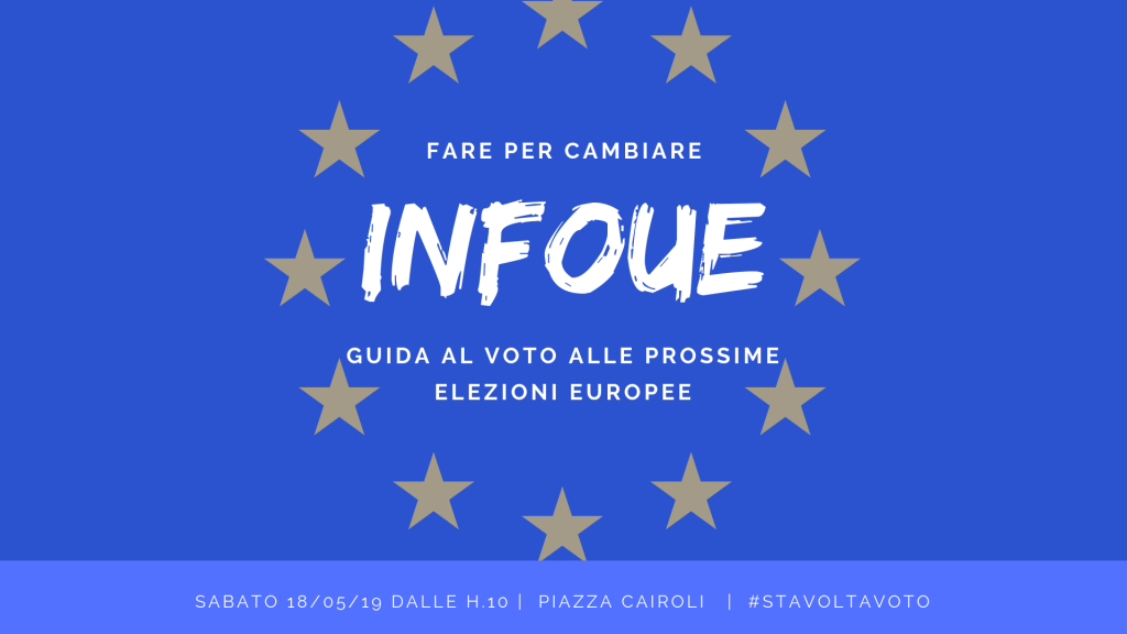 “Riteniamo la Democrazia il valore fondamentale e più importante per la nostra società, riteniamo altrettanto fondamentale che il cittadino sappia ben utilizzare i poteri e gli strumenti messi a disposizione dalla Democrazia, ecco perché, con l’avvicinarsi delle prossime Elezioni Europee del 26 Maggio, è per noi importante che ogni cittadino sappia come esercitare al meglio il proprio diritto di voto”. Per questo i ragazzi di Fare per Cambiare sabato prossimo, dalle ore 10 alle ore 19, saranno presenti a Piazza Cairoli con un banchetto informativo. L’associazione illustrerà ai cittadini le modalità di voto, e fornirà informazioni utili sul sistema di ripartizione dei seggi, sui partiti candidati e sui poteri degli organi dell’UE. “Ogni domanda merita di aver risposta, ogni proposta merita di essere ascoltata, e noi saremo lì per quello, con risposte dirette, semplici ed immediate! Vogliamo un voto libero, vogliamo che i cittadini si rechino alle urne per esercitare il fondamentale diritto di scrivere il presente ed il futuro della nostra Unione Europea, vogliamo far si che tutto questo accada, impegnandoci in prima persona, aiutando ed ascoltando ogni persona, poiché solamente tramite la consapevolezza, l’esercizio dei propri diritti e la costruzione di soluzioni assieme ai cittadini sarà possibile essere artifici di ciò che ci accade attorno”.