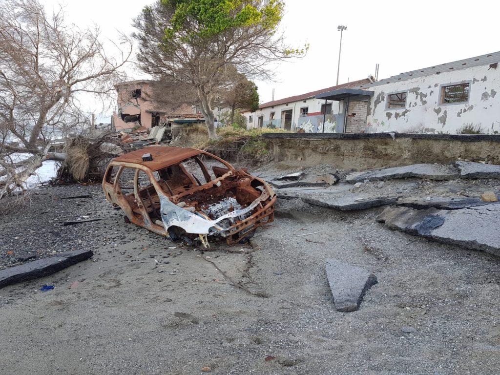 Il mare che avanza a Messina. Le immagini che vi mostriamo oggi, a corredo nella gallery, raccontano un’altra faccia di una città: una città che rischia di essere ingoiata dal mare. Sono foto scattate nell’ex cantiere Samar, all’altezza del sottopasso della Stazione di Contesse. Foto che certificano il disastro che sta procurando l’erosione costiera e la situazione di totale abbandono in cui è piombata la zona di Contesse Unrra. Le ultime mareggiate hanno causato nuovi crolli all’edificio di due piani all’interno dell’ex zona industriale: la struttura è pronta a collassare e l’area, al momento, è accessibile a chiunque. Le recinzioni messe dalla Guardia costiera sono state divelte.