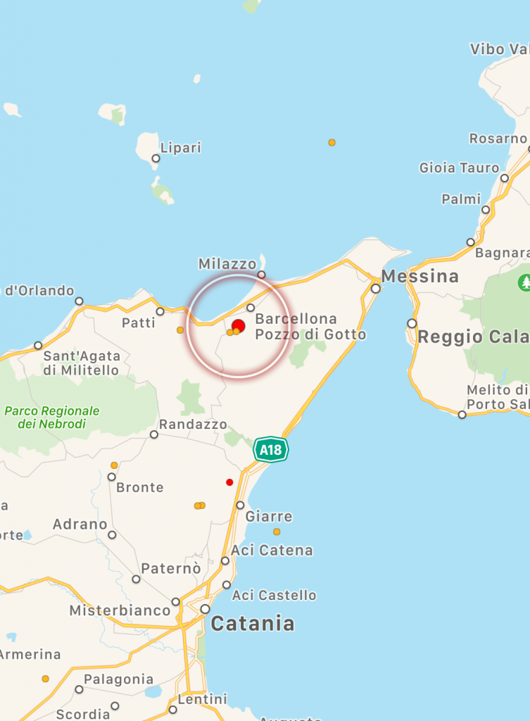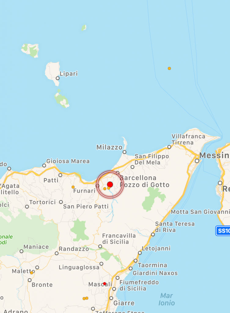 Una scossa di terremoto di magnitudo 3.1 ad appena 7km di profondità ha colpito la Sicilia nord/orientale alle 23:01 della notte: paura a Barcellona Pozzo di Gotto, ma fortunatamente non si sono verificati danni. La scossa è stata distintamente avvertita in tutta l’area tirrenica messinese, soprattutto a Rodi Milici, tra Barcellona Pozzo di Gotto, Terme Vigliatore, Castroreale, Mazzarà Sant’Andrea, Furnari, Falcone e Oliveri.