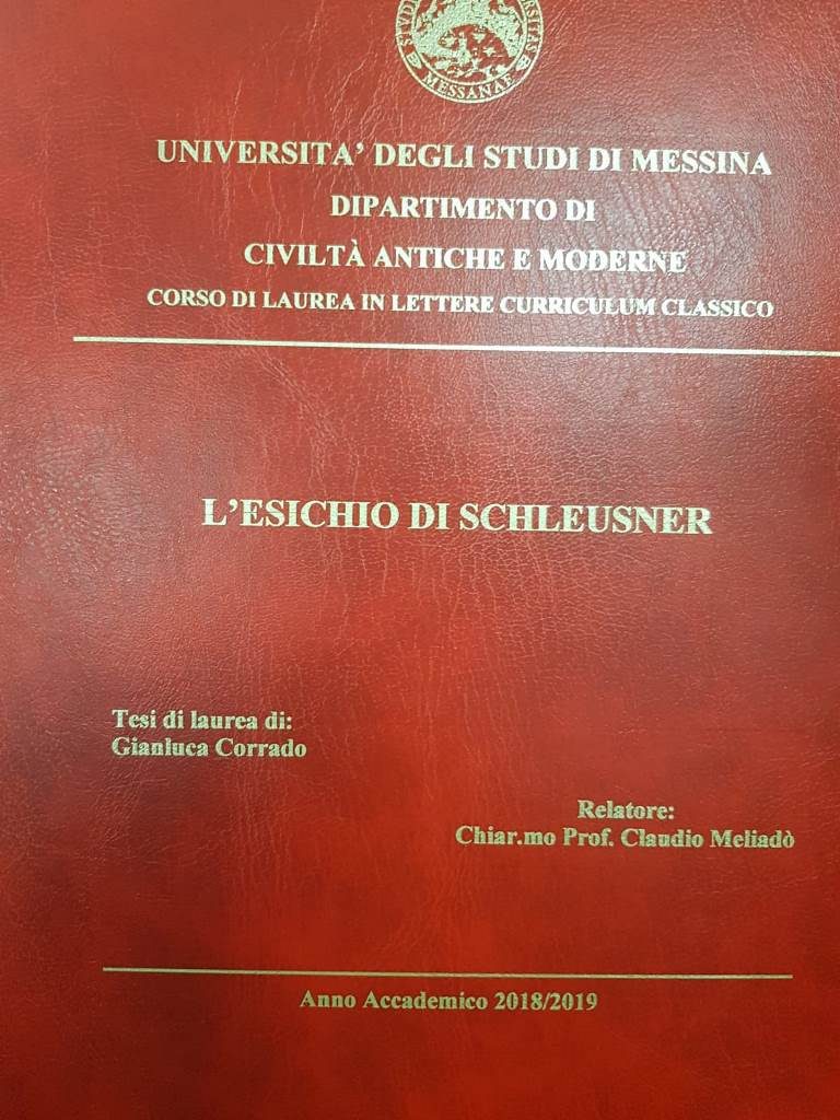 Si è laureato stamattina presso la facoltà di lettere classiche dell’università degli studi di Messina il giovane collaboratore di StrettoWeb Gianluca Corrado, 22 anni, che cura per la nostra testata una particolare rubrica sulla storia e le leggende di Calabria e Sicilia. Gianluca si è laureato discutendo la tesi intitolata “L’esichio di Schleusner” il cui relatore è stato il professore Claudio Meliadò, e ha ottenuto la massima votazione di 110 e Lode.