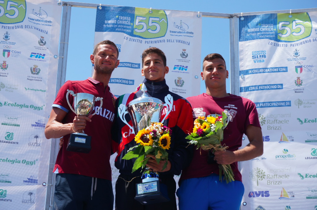 Condizioni meteo ottimali ed un leggero vento maestrale hanno accompagnato gli 80 atleti che, questa mattina, hanno affrontato la 55° edizione della Traversata dello Stretto di Messina. Le insidiose correnti che caratterizzano questo lembo di mare hanno offerto uno spettacolo unico nel suo genere che ha visto trionfare Pasquale Sanzullo del Centro sportivo carabinieri, con il tempo di 56 minuti 53 secondi e 31 centesimi. “Non è una gara, è un’emozione”, questo lo slogan che ha accompagnato un evento che si rinnova ormai da oltre 60 anni. Una manifestazione sportiva e turistica di punta che unisce le sponde della Calabria alla Sicilia e che ha visto 80 atleti provenienti da tutta Italia sfidarsi, una bracciata dopo l’altra, per solcare le acque dello Stretto e aggiudicarsi l’ambito posto sul podio. Una gara mozzafiato alla quale la Fin ha riconosciuto un valore storico riservato solo a dieci gare in tutto il paese. Come detto, a trionfare nella categoria maschile è stato Pasquale Sanzullo, atleta inserito nel novero dei possibili vincitori sin dalla vigilia. Il secondo posto, invece, è stato per Simone Ercoli del Gruppo Sportivo “Fiamme oro” (57 minuti, 5 secondi e 72 centesimi), arrivato pochi istanti dopo nel corridoio finale creato ad hoc, quest’anno, nel porticciolo turistico di Villa San Giovanni. Al terzo posto Manuel Taiani del Cus Salerno Asd (con il tempo di 57 minuti, 33 secondi e 97 centesimi).