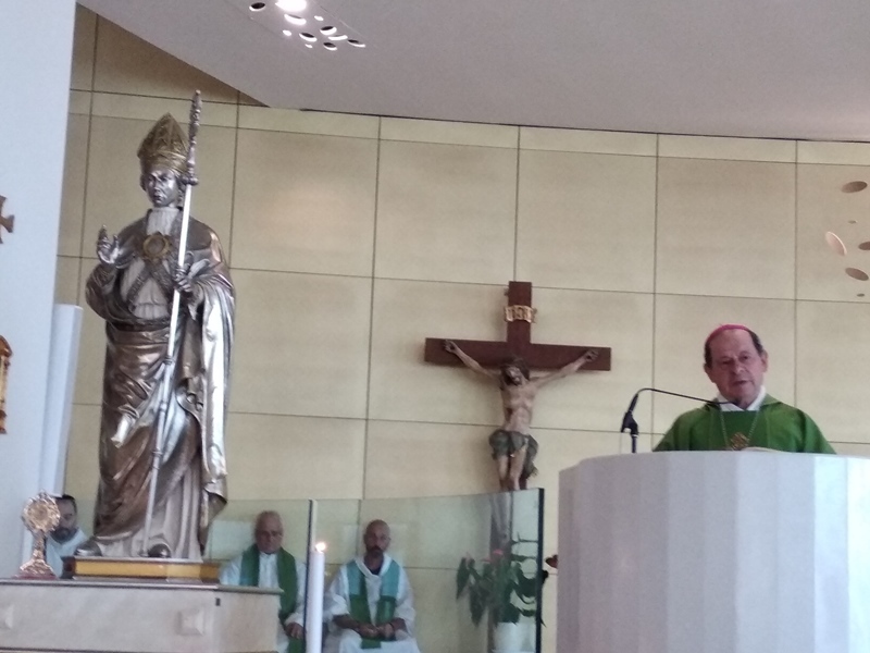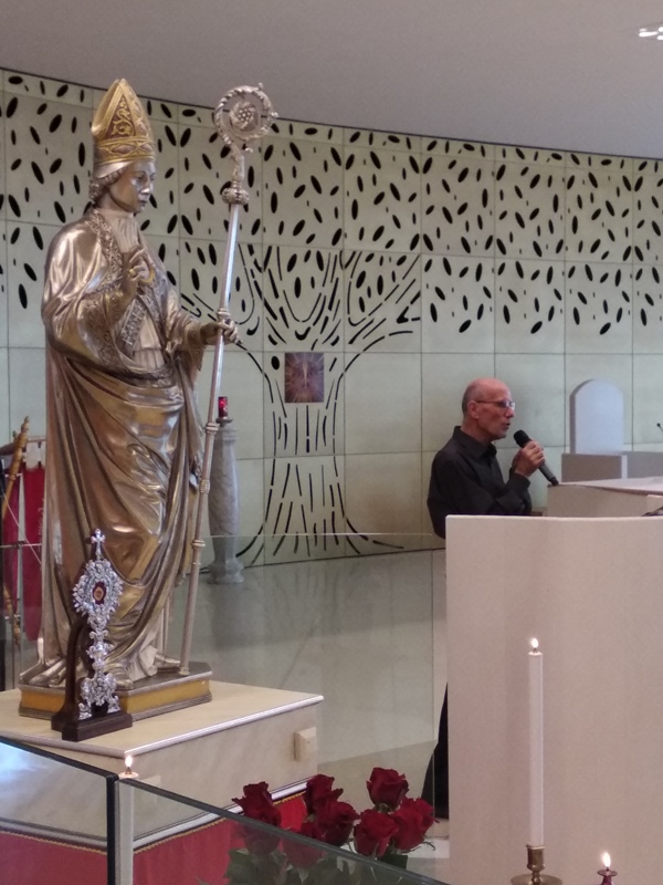 Oggi, è un giorno particolare: come già siete a conoscenza, nel nostro Santuario celebriamo la festa del grande Taumaturgo Sant’Emidio, vescovo e martire, proprio nel giorno in cui ricordiamo il suo glorioso martirio. La figura e le sembianze di questo santo martire sono rappresentate in questa meravigliosa statua lignea scolpita dal noto scultore Giuseppe Stuflesser di Ortisei, in Val Gardena. Sant’Emidio viene invocato come il protettore del terremoto, e di qualunque altra calamità naturale. Forse qui da noi non è abbastanza conosciuto come dovrebbe, per cui io vi esorto a divenire suoi devoti, a nutrire una particolare devozione verso di Lui e invocarlo quale protettore delle vostre famiglie, e certamente avrete la sua protezione.” Nel riportare alcuni avvenimenti della vita di Sant’Emidio, Fratel Cosimo ha espresso: “La conversione di Sant’Emidio alla fede cristiana irritò molto i suoi genitori, tant’è che l’ira di suo padre si scatenò a tal punto che lo prese e lo obbligò con le forze trascinandolo nel Tempio di Giove per farlo prostrare dinnanzi al dio pagano. Il vero Dio però che aveva ormai conquistato il cuore di Emidio, non ha permesso affatto che Egli si prostrasse in adorazione davanti al dio pagano. Guarda caso, io direi voluto da Dio, proprio in quel momento un segno miracoloso si verificò: una forte scossa di terremoto fece crollare il tempio di Giove, seppellendo così sotto le macerie quell’idolo bugiardo. Questo è il primo segno di tanti segni miracolosi che hanno accompagnato il Santo vescovo Emidio nel suo ministero apostolico di evangelizzazione. Emidio subito dopo la sua conversione, mentre era ancora nella sua patria, fu avvisato da un angelo di lasciare presto per amore di Dio il suo paese, e partire verso l’Italia senza preoccuparsi dei suoi parenti e dei suoi amici. Prima ancora che il giovane Emidio fosse consacrato vescovo dal Papa Marcellino, trascorse un periodo di predicazione nella città di Roma. Il papa Marcellino, dopo aver visto tutto il suo operato, lo consacrò vescovo e lo inviò nella città di Ascoli Piceno. I pagani nell’ascoltare la predicazione di Sant’Emidio, si convertivano e accoglievano la Parola del Signore.