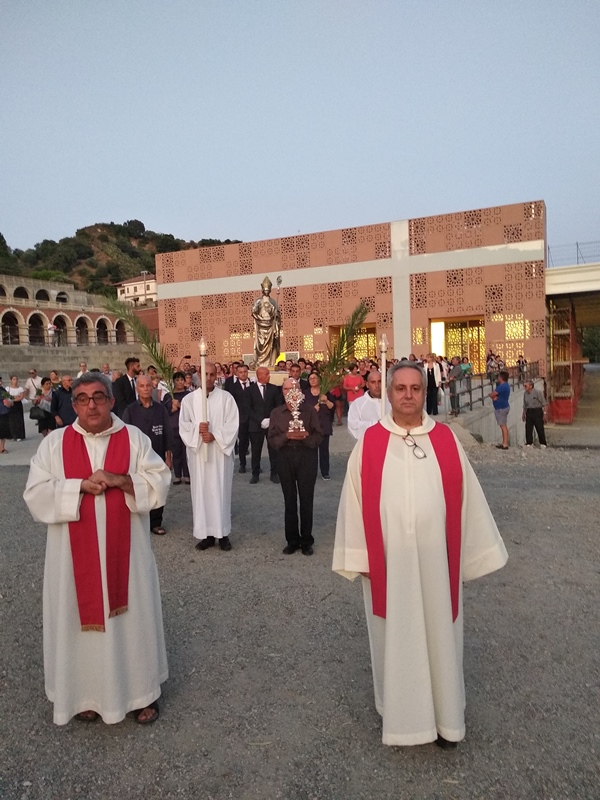 Molti pellegrini si sono recati, lunedì 5 agosto, presso il Santuario di Nostra Signora dello Scoglio, per onorare e venerare Sant’Emidio, vescovo e martire, in occasione della festa in suo onore. Solenni celebrazioni fortemente volute da Fratel Cosimo Fragomeni, il mistico fondatore del santuario mariano calabrese, di Santa Domenica di Placanica. E proprio Fratel Cosimo ha tenuto una evangelizzazione e una riflessione, sulla vita di Sant’Emidio, prima della solenne concelebrazione eucaristica, presieduta da padre Raffaele Vaccaro, rettore del santuario. Alla divina liturgia è seguita una suggestiva e molto partecipata processione, con la statua del santo, la benedizione delle piante di basilico, portate dai pellegrini. A conclusione, vi è stata la benedizione finale con la reliquia di primo grado di Sant’Emidio, che è stata donata dall’arcivescovo di Ascoli Piceno, monsignor Giovanni D’Ercole, venuto appositamente al santuario, qualche tempo fa, per consegnarla nelle mani di Fratel Cosimo. Come sempre, si sono registrate interminabili file presso i confessionali e si è respirata un aria di grande fede e spiritualità. Fratel Cosimo, nella sua catechesi ha spiegato il significato della pianta di basilico, legata alla storia di Sant’Emidio e ha illustrato la stessa, in modo molto eloquente e amorevole, evidenziando la propria profonda devozione verso il santo protettore contro il terremoto e le calamità naturali. Dopo aver invitato tutti a elevare un Ave Maria alla Madre di Dio e Madre Nostra, ha detto: “Cari fratelli e sorelle, convenuti in questo rinomato Santuario mariano Nostra Signora dello Scoglio, a voi tutti rivolgo un cordiale benvenuto nel nome del Signore.