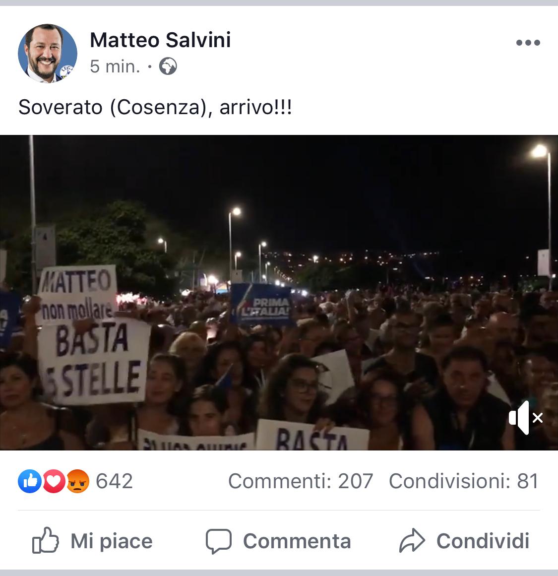 Intanto però Salvini è caduto in una clamorosa gaffe sui social. Ha annunciato il suo arrivo a Soverato indicando la provincia sbagliata, scrivendo Cosenza anzichè Catanzaro. Un particolare che in tanti hanno notato con ironia rispetto alla conoscenza della geografia meridionale da parte del leader leghista.