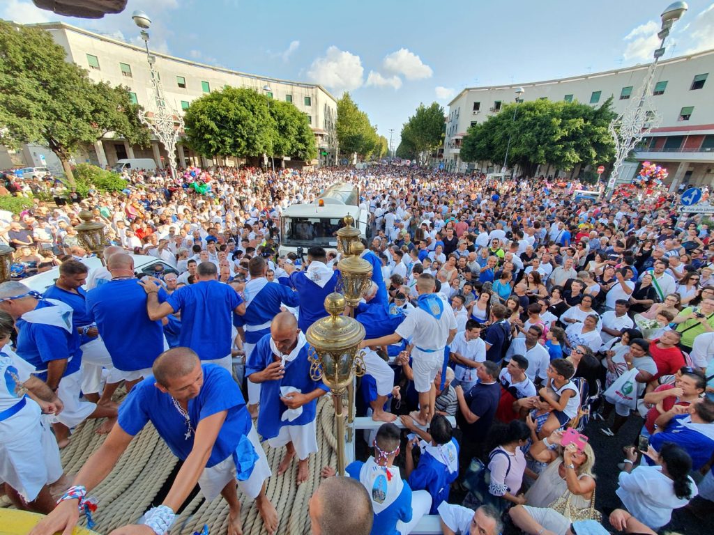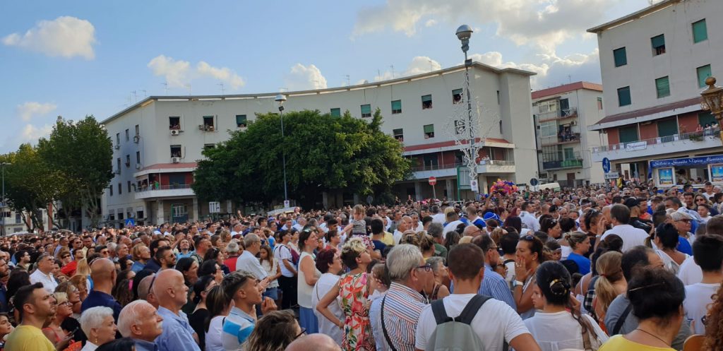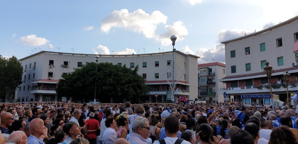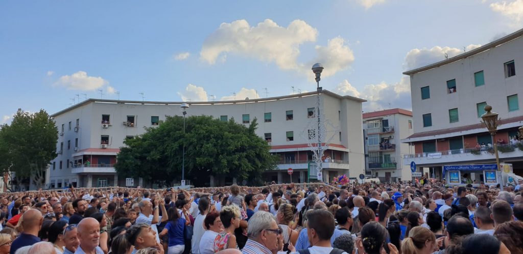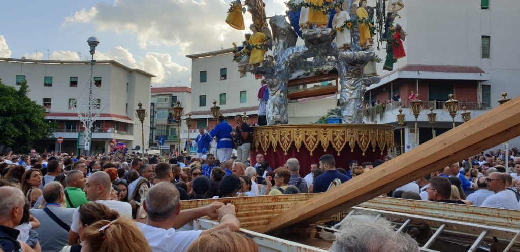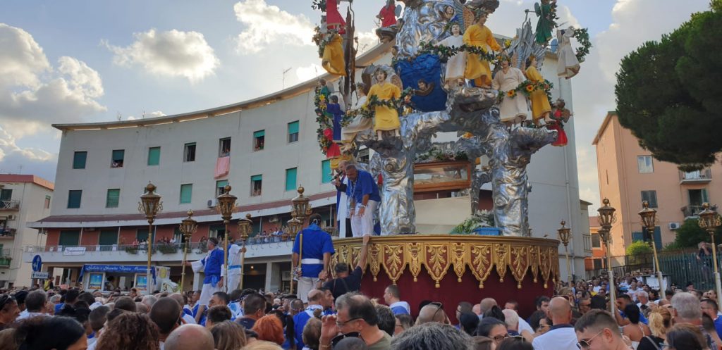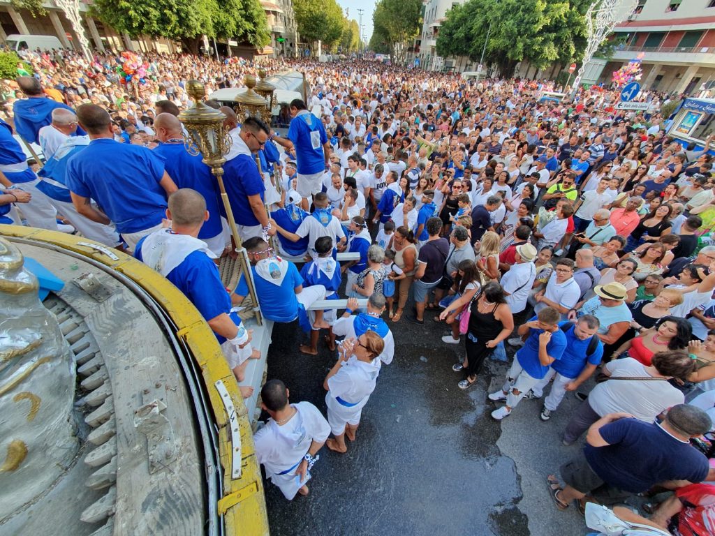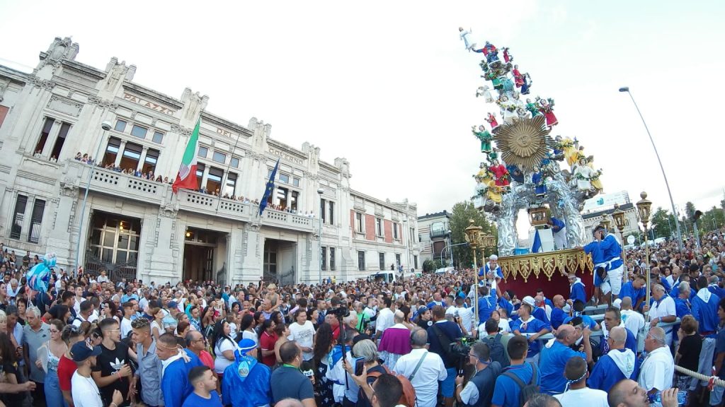 Messina rinnova la devozione alla Madre Assunta. Da una bellissima e strapiena Piazza Castronovo ha preso il via l’edizione 2019 della Vara. I fuochi hanno segnato il via della passeggiata del carro votivo, che simboleggia l’assunzione in cielo della Madonna. Tra i coordinatori della Vara gli storici Franco Molonia e Franco Celona, che dal cippo anche per questa edizione coordinano i tiratori. La Vara è partita qualche minuto dopo i fuochi pirotecnici, per garantire le necessarie misure di sicurezza. Anche quest’anno la Vara farà una sosta speciale in omaggio a Lorena Mangano, la giovane studentessa di Capo d’Orlando morta in un tragico incidente in via Garibaldi tre anni fa.