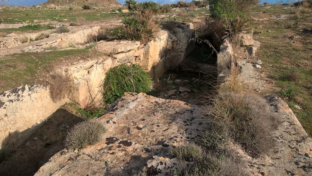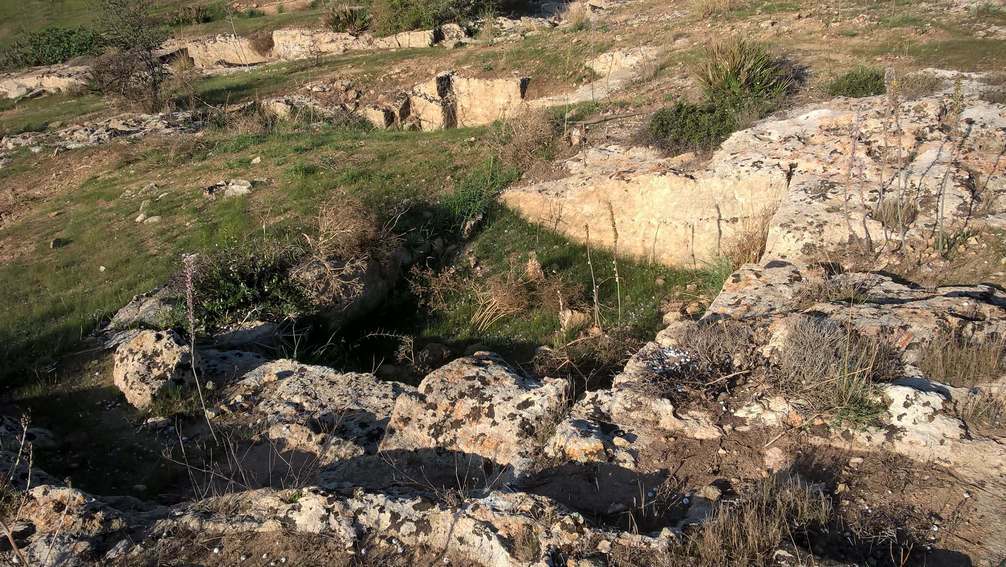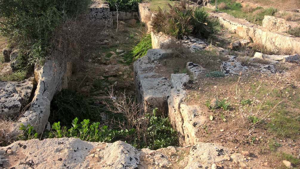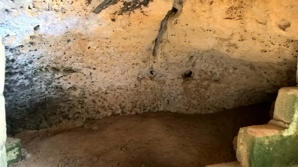 Anche qui vi sono diverse tombe e, spostandosi leggermente a sud dell’area di epoca romana, in una parete calcarenitica, si trova una tomba suddivisa in due ambienti.