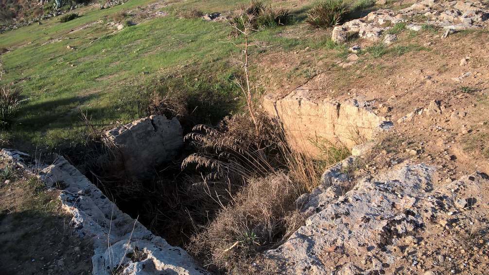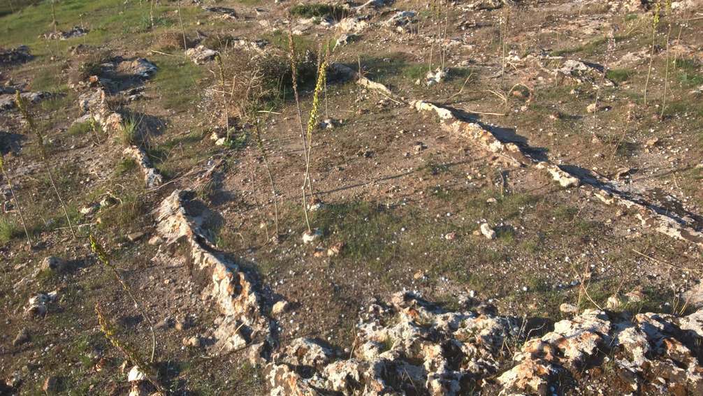 Affiorano tombe, tracce di murature, avvallamenti, elementi di probabili cisterne e depositi, e , certamente, vi è ancora moltissimo da esplorare.