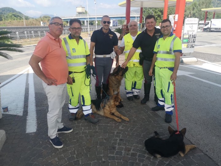 Questa mattina la Squadra Anas, in servizio sul tratto salernitano dell’A2 “Autostrada del Mediterraneo” ha salvato una famiglia di tre cani pastori tedeschi che vagavano ai bordi della barriera spartitraffico nei pressi dell’Area di Servizio Salerno Est in località San Mango Piemonte. Il Capo Squadra Vittorio Monaco, l’Assistente di Nucleo Vincenzo Santoriello e i cantonieri Pietro Cennamo, Giuseppe Bonavita, Vincenzo Tortorelli e Aniello Borrelli sono intervenuti subito per evitare che fossero investiti dalle auto in transito ed anche il rischio di un incidente. Per fortuna questa volta non si tratta di una storia di abbandono. Infatti i cani, dopo l’intervento dei cantonieri Anas, della Polizia Stradale e del Servizio Veterinario dell’ASL, sono stati portati all’interno dell’Area di servizio e grazie ai microchip sono stati identificati e riconsegnati ai loro padroni. Si erano allontanati dalla vicina località di Giovi, a circa 5 chilometri di distanza e si erano smarriti lungo l’autostrada.