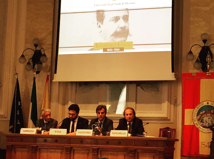 L’Aula Magna del Rettorato ha ospitato l’evento inaugurale di una giornata dedicata al ricordo di “Ludovico Fulci 1850-1934”. I lavori, moderati dal Prorettore Vicario, prof. Giovanni Moschella sono stati aperti dai saluti istituzionali del Rettore, prof. Salvatore Cuzzocrea, dell’avv. Pietro Carrozza (Presidente del Comitato Promotore per la Commemorazione del Sen. Prof. Ludovico Fulci) e dell’On. Francesco D’Uva (Questore della Camera dei Deputati). Erano presenti, tra gli altri, l’On. Cateno De Luca (Sindaco di Messina), S.E. Mons. Cesare Di Pietro (Vescovo Ausiliare di Messina), la dott.ssa Maria Carmela Librizzi (Prefetto di Messina), il dott. Vito Calvino (Questore di Messina), l’Avv. Domenico Santoro (Presidente dell’Ordine degli Avvocati di Messina) e S.E. Francesco Paolo Fulci (Presidente del Gruppo industriale Ferrero, diplomatico e già Ambasciatore presso le Nazioni Unite).