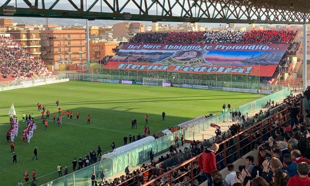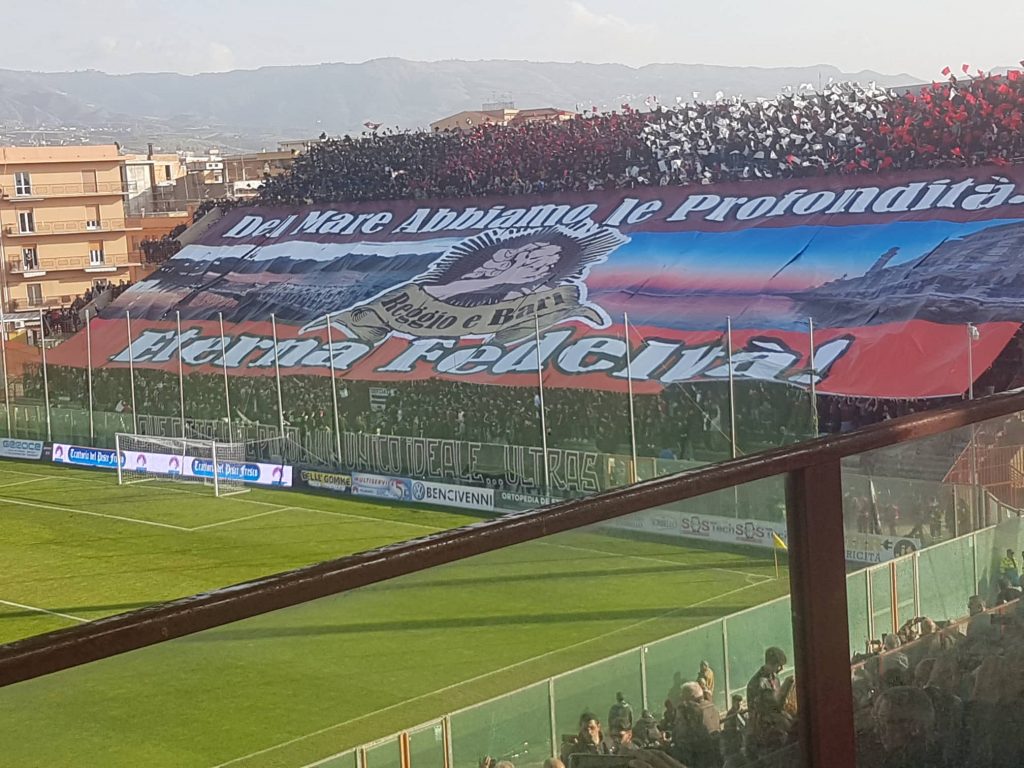 Una coreografia mozzafiato, degna di una partita che con la Serie C non c’entra nulla. Reggina-Bari, prima contro seconda, tifoserie gemellate. Uno spettacolo, sugli spalti e in campo, una giornata di festa d’altri tempi.