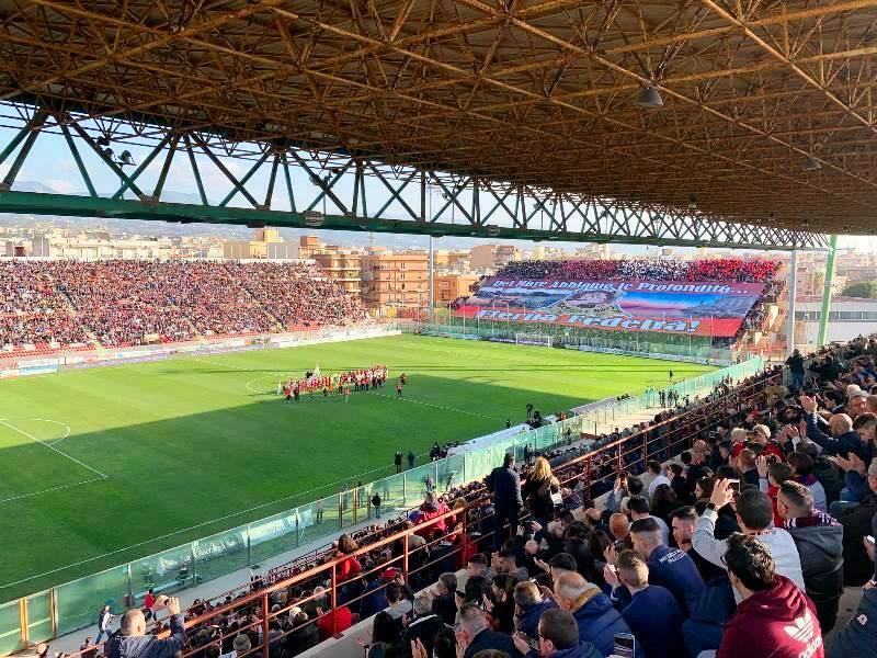 Reggina-Bari è iniziata, ecco le foto della splendida coreografia della Curva Sud amaranto, gremita come non mai per un grande incontro