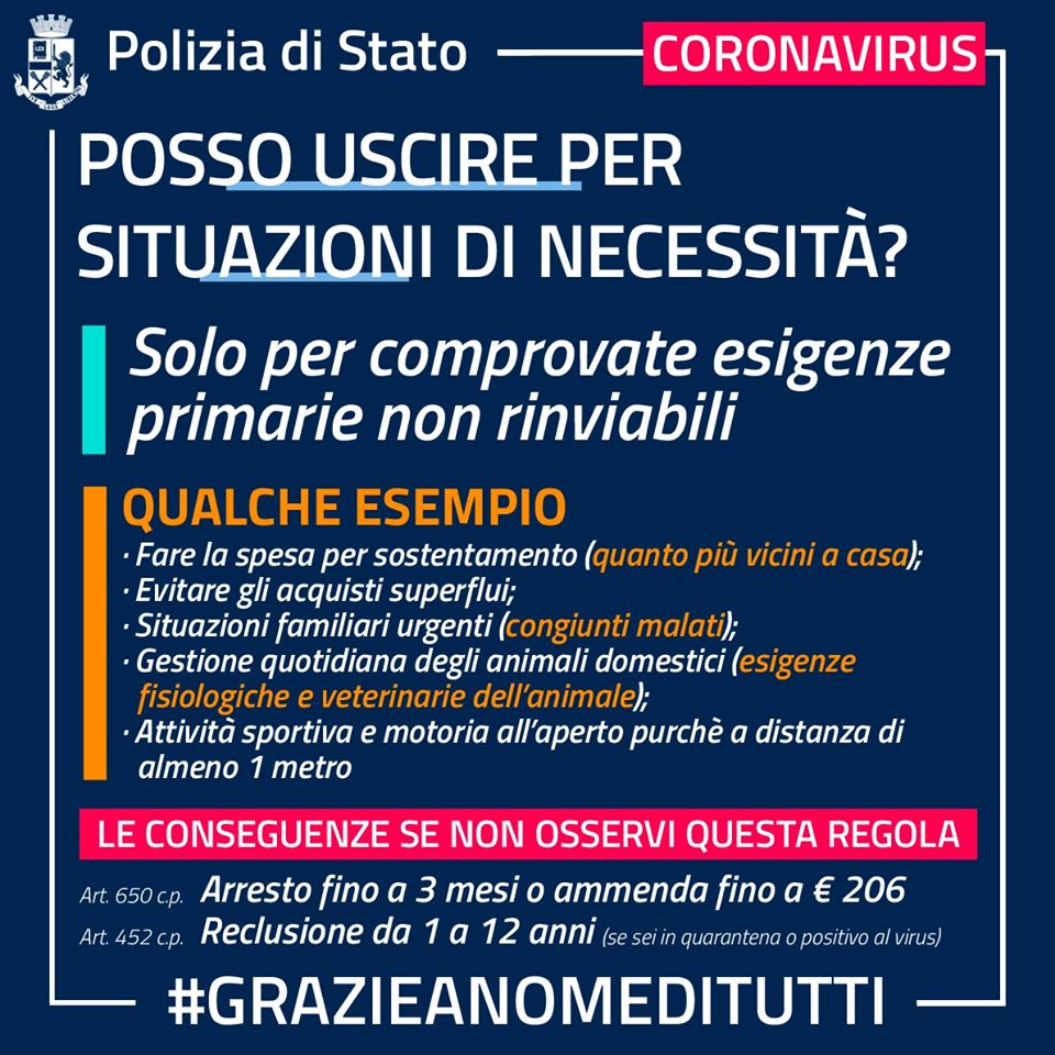 Infine, riportiamo anche il vademecum pubblicato dalla Polizia di Stato, che conferma come sia possibile uscire per far fare i bisogni ai cani, camminare, correre e passeggiare per svolgere attività fisica: