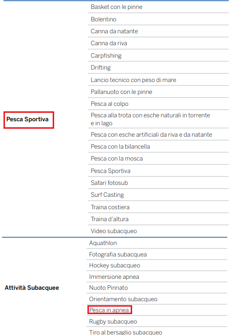 Da domani – Giovedì 30 Aprile – in Calabria sarà consentito anche andare a pesca. Perchè l’ordinanza consente lo “svolgimento di sport individuali“, e la pesca è una disciplina sportiva ufficialmente riconosciuta dal CONI (vedi tabella sotto). Ovviamente non si può andare in pesca in gruppi, o in coppie: è consentito a singoli individui, da soli, non accompagnati.