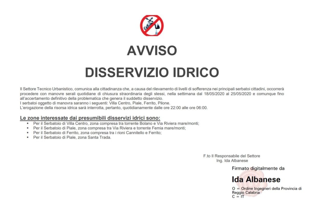 “Previeni le infezioni con la corretta igiene delle mani” recita l’infografica del Ministero della Salute, ribadendo un concetto che ormai da mesi ci viene rammentato dal Governo e dalla comunità scientifica: il coronavirus si può trasmettere anche attraverso quello che si tocca con le mani, ed è importantissimo avere un’igiene scrupolosa. Persino nei DPCM, quasi come un obbligo, viene rammentata la corretta pulizia delle mani. Chissà se il Presidente del Consiglio o il Ministro della Salute sono al corrente che a Villa San Giovanni, da qualche giorno, questo non è pienamente consentito. Ovvero, dalle h 22 alle h 6 del gg successivo, fino a data da destinarsi, ogni giorno non uscirà una sola goccia dai rubinetti dei cittadini. Così recita l’avviso del Settore Tecnico Urbanistico, recentemente colpito da indagini ed arresti. Questo in un momento dove l’igiene viene messa al primo posto. Tra l’altro, con le riaperture delle attività di questi giorni, molti orari vengono prolungati per poter lavorare su appuntamenti, quindi presumibilmente in tanti avranno la necessità di fare una doccia o altro in casa alle 22. Una situazione che i cittadini villesi non sono disposti a tollerare: dopo oltre 2 mesi di reclusione e vari problemi da affrontare, questa è proprio una doccia fredda…senz’acqua! Le soluzioni che si possono leggere nei social sono tre: stop ai pagamenti per interruzione di servizio pubblico, denunce e civili proteste di fronte a palazzo San Giovanni. Situazione sgradevole che si aggiunge all’emergenza rifiuti, in un momento storico in cui i nervi dei cittadini sono già stati sottoposti a notevole stress…eppure solo due anni fa l’amministrazione comunicava in pompa magna ai cittadini che dopo anni ed anni il problema idrico era finalmente risolto.