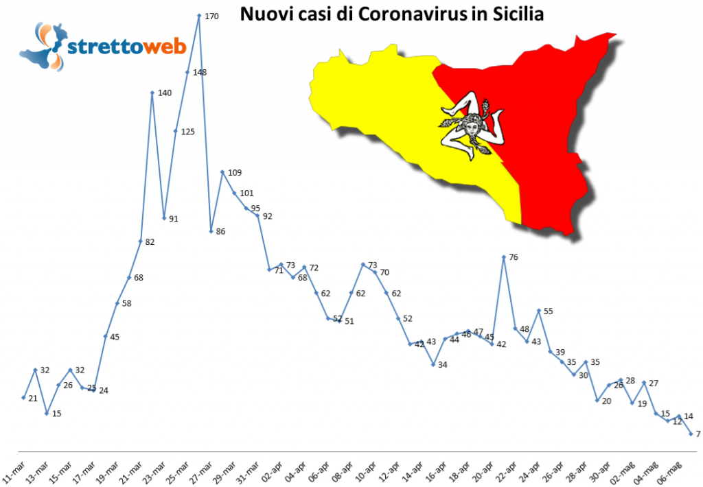 Giornata record in Sicilia: oggi su 2696 tamponi si registrano solo 7 nuovi casi di coronavirus. Inoltre si registra anche un nuovo boom di guariti: 80 in più rispetto a ieri. Ecco il quadro riepilogativo della situazione in Sicilia, aggiornato alle ore 16 di oggi, così come comunicato dalla Regione Siciliana all’Unità di crisi nazionale.