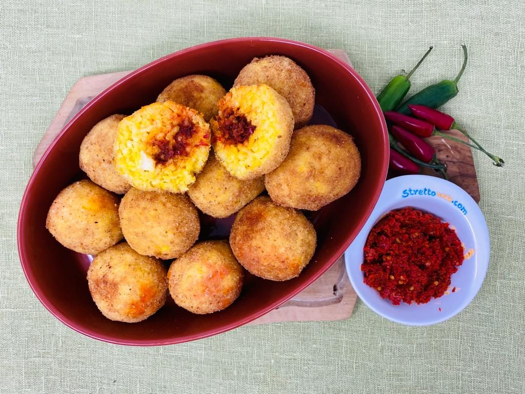 La ricetta degli arancini fa parte della tradizione siciliana ma ha origini remote e resiste da secoli perché ci regala un cibo così delizioso da essere inserito nell’elenco dei Prodotti agroalimentari tradizionali italiani del Ministero delle Politiche Agricole. Nella versione calabrese la farcitura è di ‘nduja e provola filante, davvero difficile resistere!