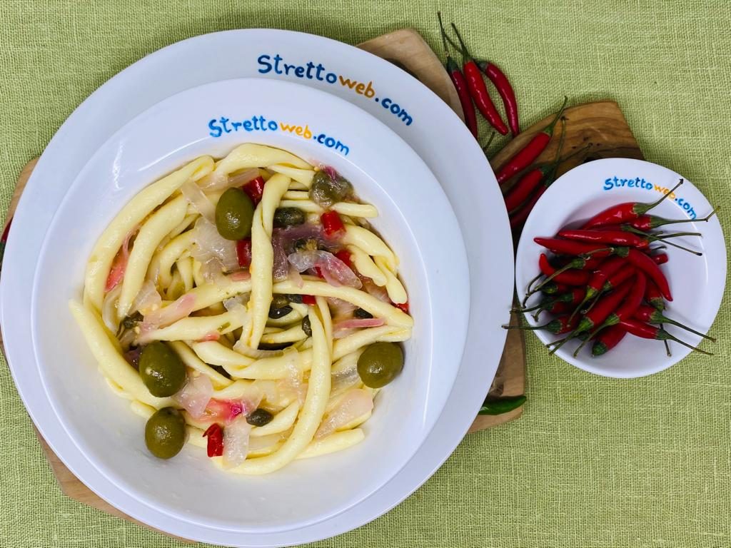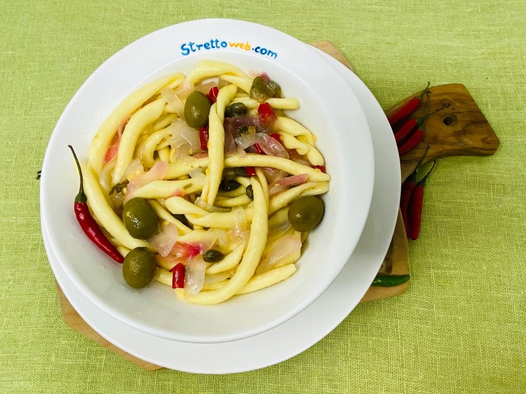 Premete due limoni e versate il succo in una padella. Unite la cipolla, già affettata, i capperi, le olive ed il peperoncino. Versate anche un filo di olio extravergine di oliva e fate cuocere a fiamma bassa, mescolando, finchè le cipolle non acquistano morbidezza ed un particolare colore rosa e, se occorre, aggiungete acqua di cottura della pasta. Cuocete la pasta e scolatela prima per concludere la cottura in padella. Amalgamate bene la pasta col condimento al limone e servite.