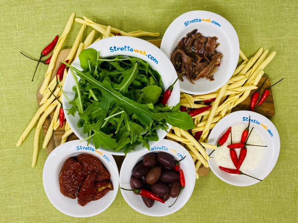 La rucola è considerata un “superfood”: sono 17 i nutrienti essenziali per la salute contenuti in questo ortaggio capace di produrre delle molecole ad azione antinfiammatoria, antiossidante e antinfiammatoria fra cui il sulforafano, presente anche nei broccoli. Questo pesto racchiude anche i pomodori secchi, il cui primo produttore italiano è la Calabria. Il sole, l’aria, il clima mite e asciutto ed il sale sono gli unici ingredienti che creano i pomodorini secchi calabresi. L’essiccazione al sole è una delle tecniche di conservazione più antiche della tradizione dei nostri contadini che, per necessità, impararono a realizzare le conserve alimentari. Le alici sott’olio arricchiscono questo pesto: preziose quando ancora non esistevano i frigoriferi, oggi sono un “Prodotto Agroalimentare Tradizionale Calabrese”.