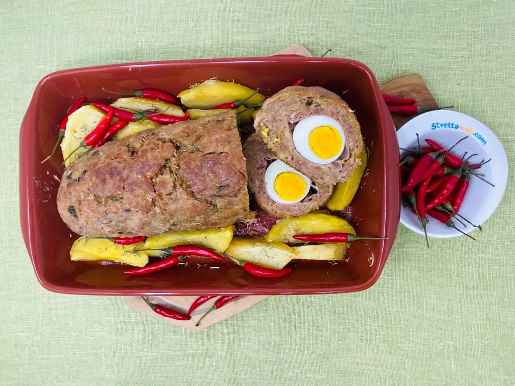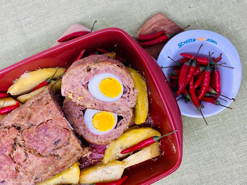 Il polpettone al forno è una ricetta della tradizione dalle mille varianti, è facile da realizzare e nasce come piatto di recupero, motivo per cui è versatile nella scelta degli ingredienti. L’origine del polpettone calabrese è contadina ma, da pietanza povera nata per utilizzare gli avanzi, è diventato il piatto delle feste. La versione calabrese, come di prassi, è molto ricca e nutriente!!!