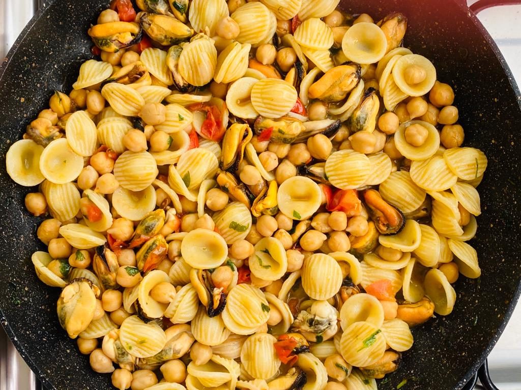 La pasta e ceci con le cozze è un primo piatto che, con un accostamento a prima vista insolito, rispecchia la tradizione calabrese ed i suoi sapori legati sia al mare che alla terra. Questa ricetta rientra nella cucina tipica delle massaie abili nell’ utilizzare tutti gli ingredienti in loro possesso con risultati sorprendenti!