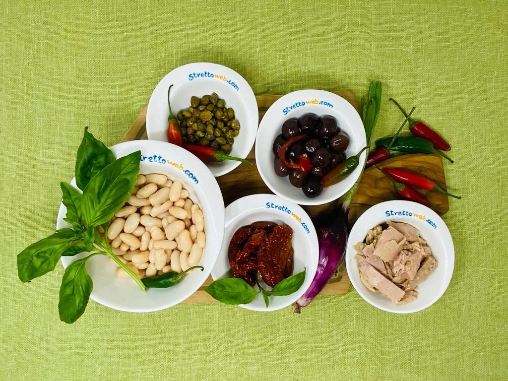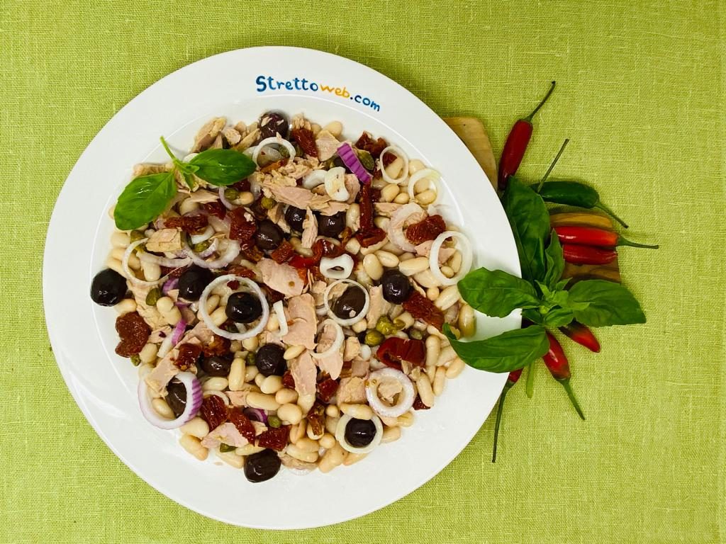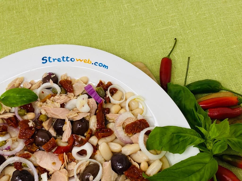Un’ insalata, questa, molto ricca dal punto di vista nutrizionale: i cannellini, fonte preziosa di antiossidanti, sono ricchi di rame e di proteine, di fibre e di vitamine del gruppo B. Il tonno si abbina perfettamente a questi legumi, ai pomodori sott’olio ed alla cipolla rossa di Tropea, alimenti simbolo della tradizione calabrese.