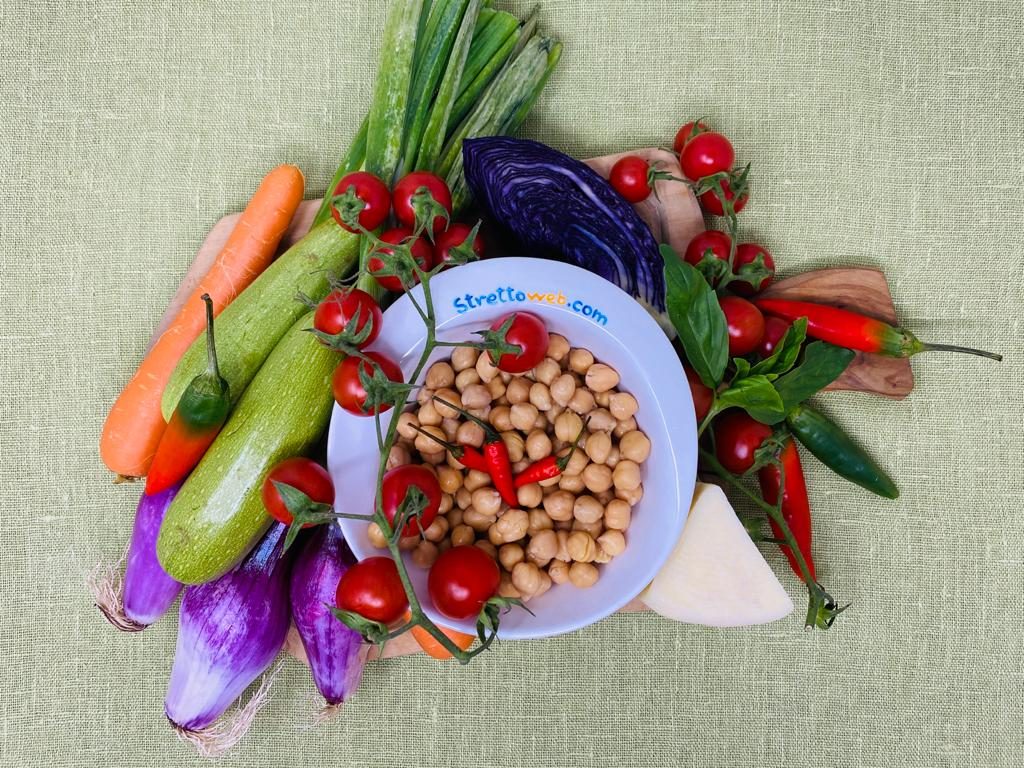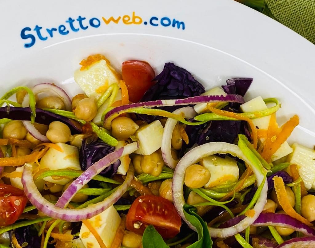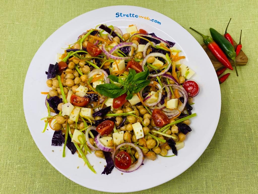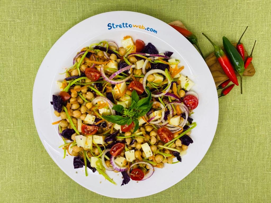 La parola insalata vuol dire letteralmente “cospargere di sale” e questa abitudine di condire verdure crude con sale, olio, aceto o limone esiste fin dall’antichità nelle diverse tradizioni culinarie. I Romani chiamavano l’insalata acetaria perché erano soliti condirla con aceto. Oggi le insalate non racchiudono solo ortaggi crudi ma cibi di vario genere che si uniscono per creare secondi piatti o piatti unici. In questa ricetta i ceci, detti “la carne dei poveri” perché ricchi di proteine e carboidrati, di acidi grassi omega 3, vitamine B e minerali, si abbinano perfettamente al mix di verdure ed al pecorino calabrese.