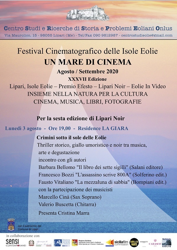 Con “Crimini sotto il sole delle Eolie” ritorna il Lipari Noir Festival, la manifestazione culturale dedicata alla narrativa poliziesca ideata e diretta da Cristina Marra in collaborazione con il Centro Studi Eoliano presieduto da Antonino Saltalamacchia. La sesta edizione del festival che nel corso degli anni ha fatto sbarcare sull’isola scrittori tra i quali Santo Piazzese, Alessia Gazzola, Roberto Riccardi e Lorenzo Beccati, si concentrerà in un’unica serata, il 3 agosto dalle 19,00 a bordo piscina del residence La Giara con gli autori Barbara Bellomo, Fausto Vitaliano e Francesco Bozzi. Condotta da Cristina Marra, la serata-evento proporrà un talk show e la presentazione dei romanzi “Il libro dei sette sigilli” (Salani) di Barbara Bellomo, £La mezzaluna di sabbia” (Bompiani) di Fausto Vitaliano e “L’assassino scrive 800°” (Solferino) di Francesco Bozzi accompagnati dalle esecuzioni musicali di Valerio Buscetta e Marcello Cinà, interverrà anche l’artista Loredana Salzano che ha realizzato la locandina e i badge della manifestazione con la sua “Alice Noir”.