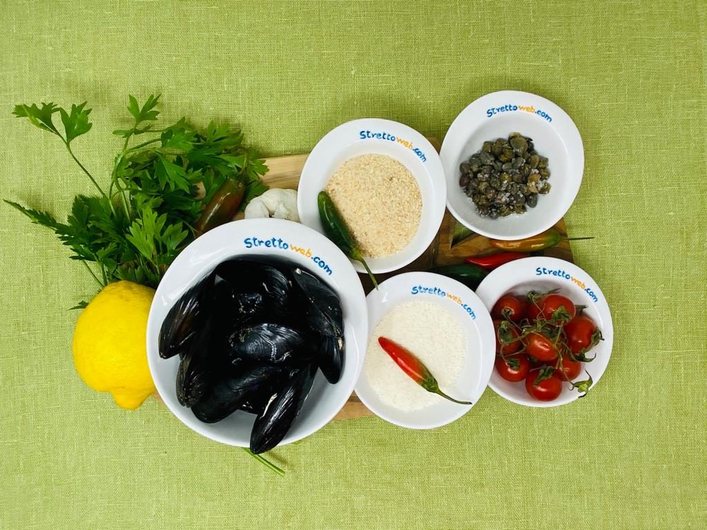 Iniziate pulendo le cozze ed eliminando eventuali incrostazioni sotto l’acqua corrente. Versatele in padella e fatele cuocere per circa 5 minuti a fiamma moderata finchè non saranno aperte. Versate in una ciotola pangrattato, formaggio, prezzemolo e aglio tritati, un pizzico di pepe e mescolate. Aggiungete anche i pomodorini pachino tagliati a dadini ed i capperi tritati finemente. Versate l’olio e amalgamate per ottenere un composto umido. Staccate la parte vuota del guscio delle cozze e riempite l’altra col mollusco. Mettete le cozze su una teglia, versate un filo di olio ed infornate per 15 minuti a 200 gradi. Sfornate non appena si forma la crosticina.
