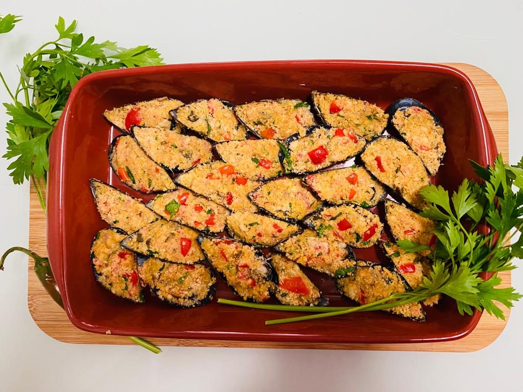 Le cozze gratinate sono protagoniste indiscusse della tradizione gastronomica del Sud. Questa ricetta capace di rievocare immediatamente i nostri luoghi è realizzata con il pangrattato “calabrese” che ha sempre avuto un ruolo decisivo nella cucina tradizionale. Il pane era considerato sacro e quello che avanzava era riutilizzato nei ripieni e nelle impanature. La” muddica cunzata” è, infatti, l’essenza della nostra cucina da cui nascono polpette, cotolette, tortiere, involtini e pomodori ripieni che sono solo alcune delle pietanze che si realizzano con questo squisito composto.